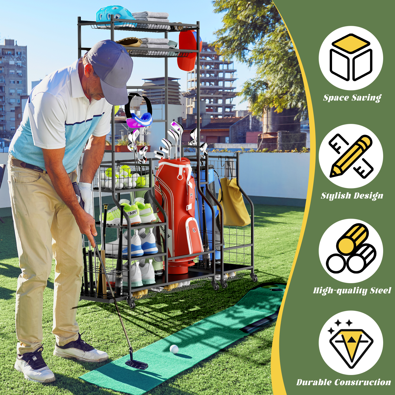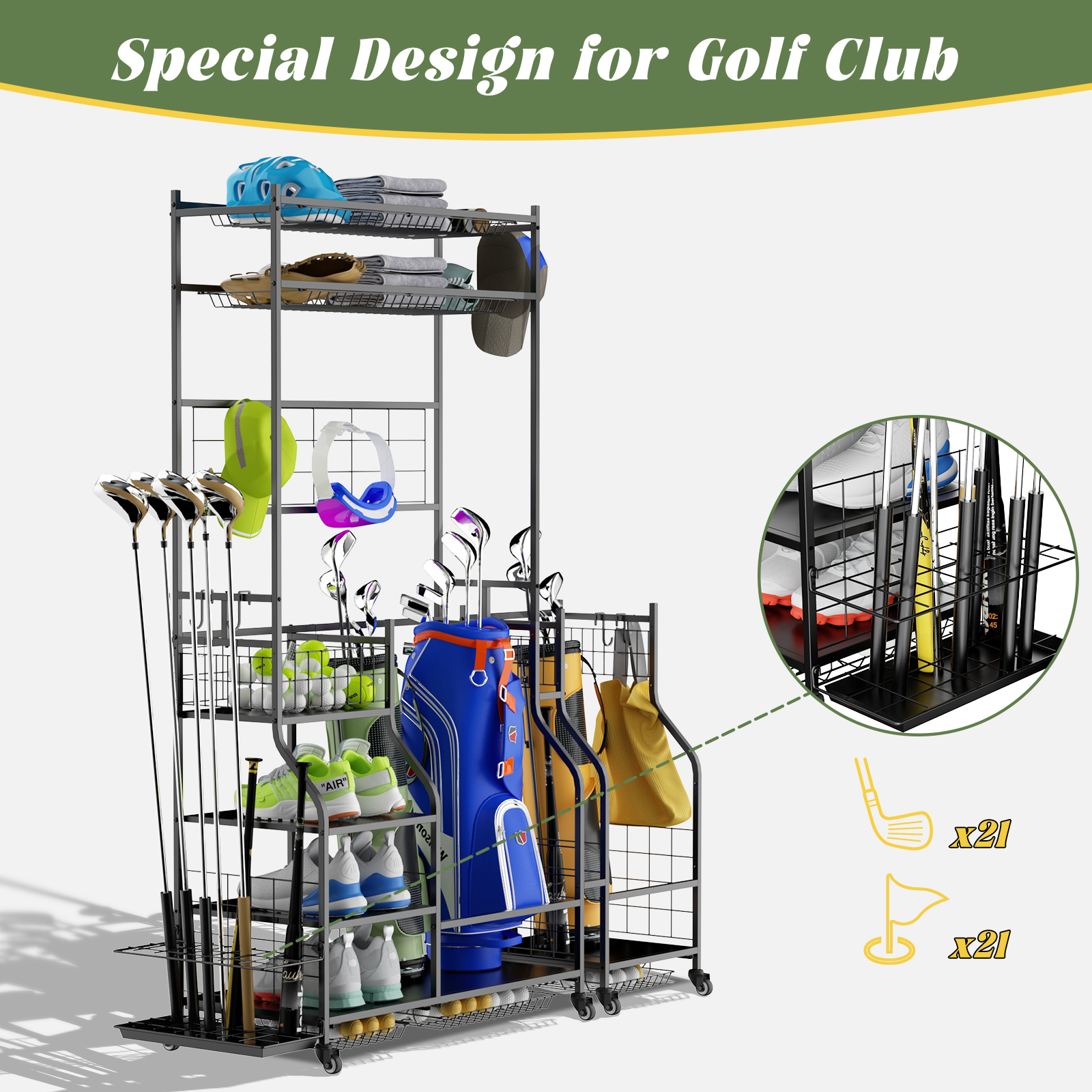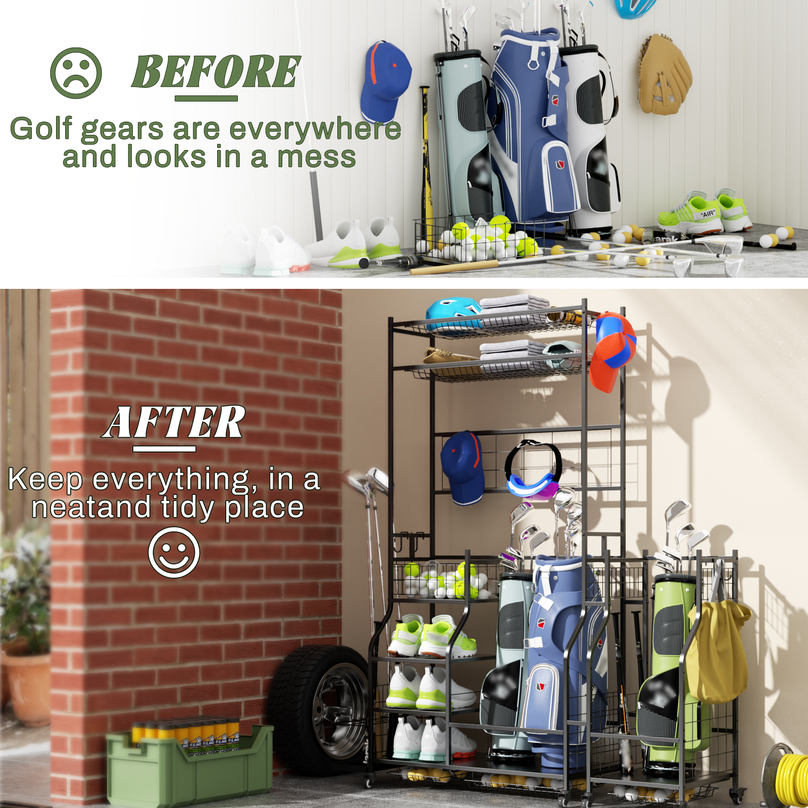 Product Name:Golf Bag Storage Garage Organizer,Golf Club Bag Storage Rack for Garage, Extra Storage Rack for Golf Clubs,Golf Bag Organizer Fit for Garage,Shed,Basement