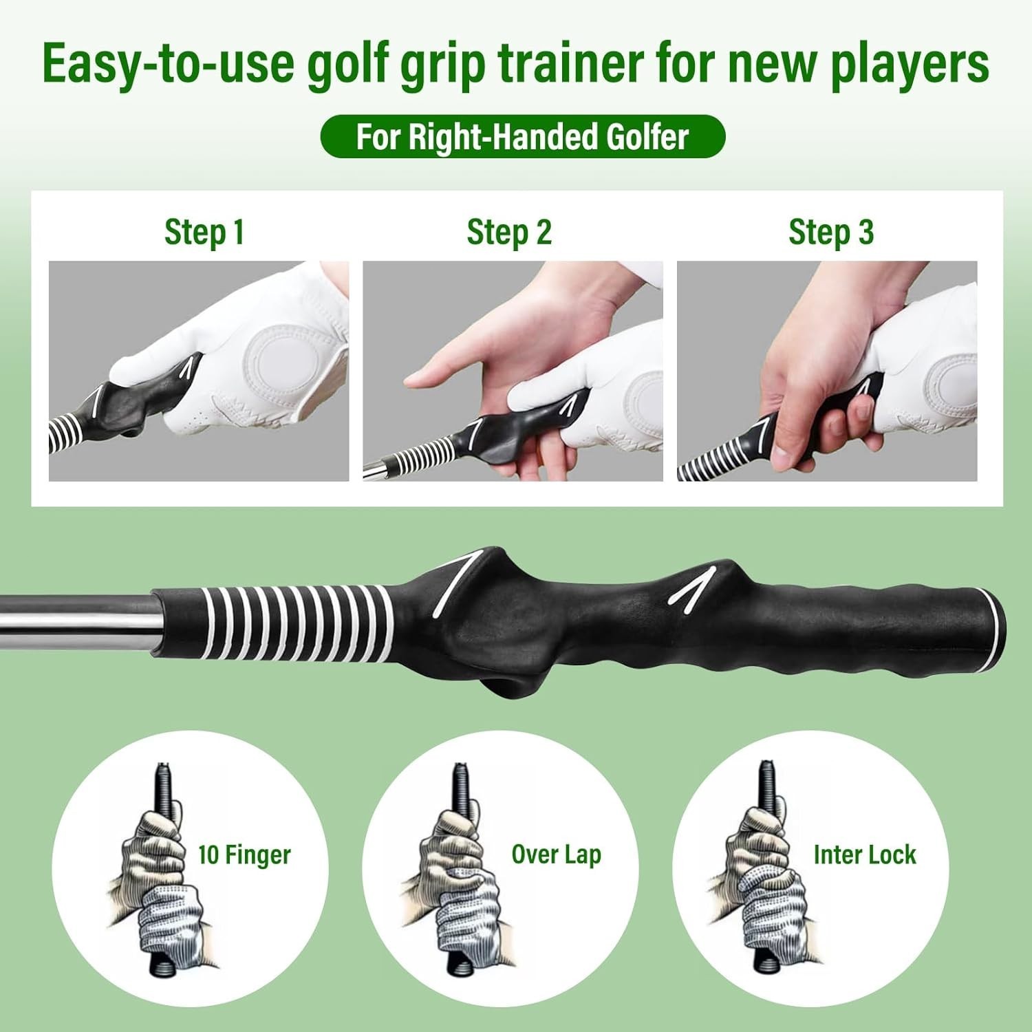 【Ergonomic Grip Correction】: This golf grip trainer is specially designed for right-handed golfers, featuring molded anti-slip rubber grips that guide the correct placement of hands and fingers. The contour shape enhances the correct grip alignment and helps cultivate consistent muscle memory to improve hitting accuracy and control.