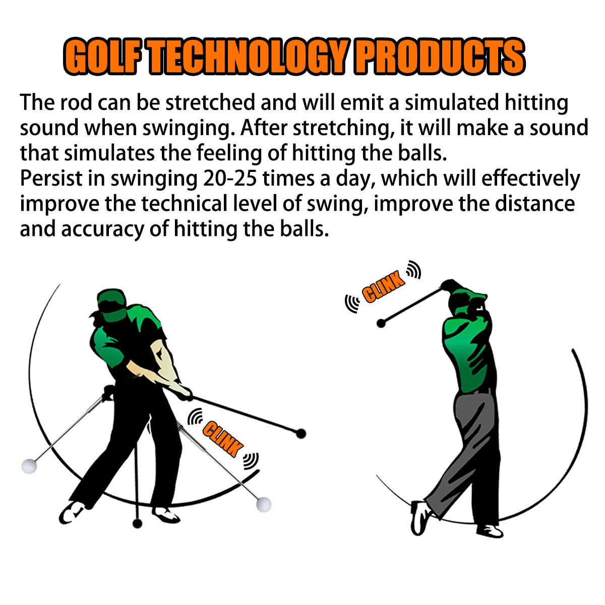 【Dynamic Swing Feedback Trainer】: The golf swing training equipment has a retractable club body that extends and makes a "click" sound during the swing to indicate the correct posture. This precise auditory feedback will immediately send out the correct swing mechanism signal, helping you adjust the rhythm, balance, power transmission and release timing with each repetition.