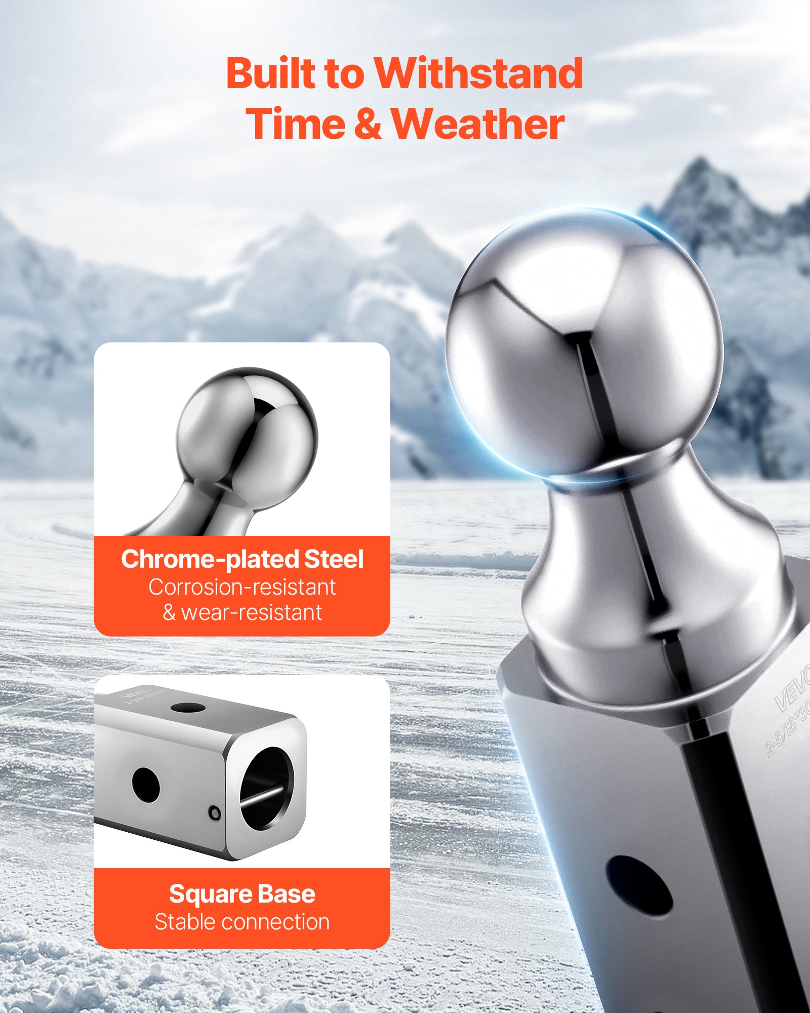 Reliable Design: The gooseneck ball features chrome-plated steel treated with heat, which resists corrosion, wear, time, and weather. With its square base and semi-rounded corners, it enables low-noise towing, reduces jams and maintenance costs