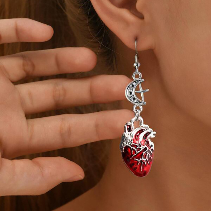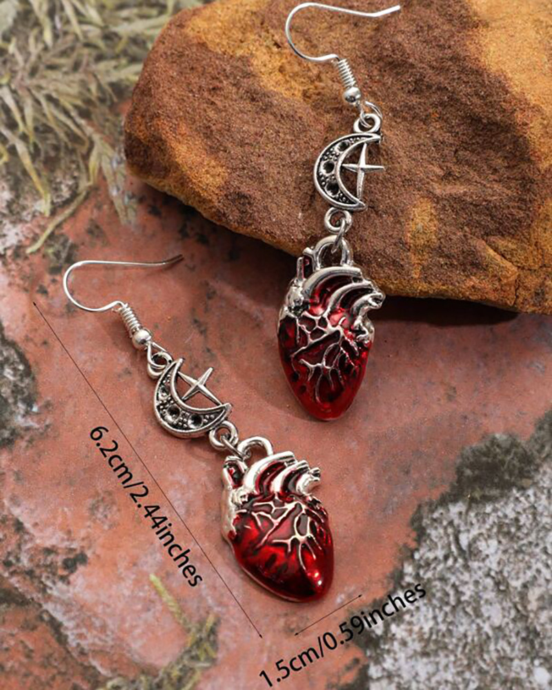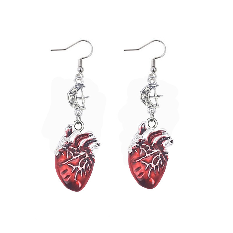 Gothic Beating Heart Crescent Cross Earrings