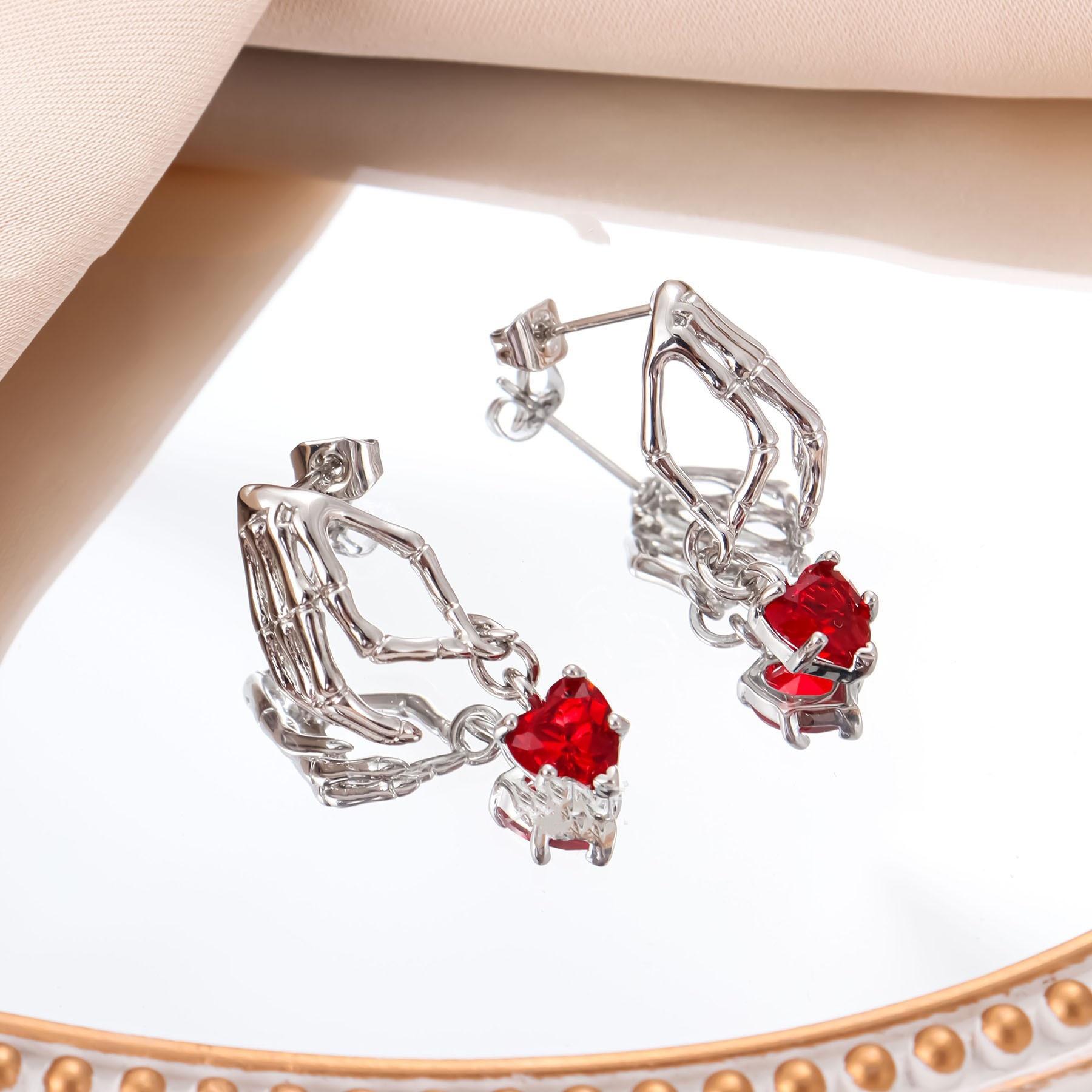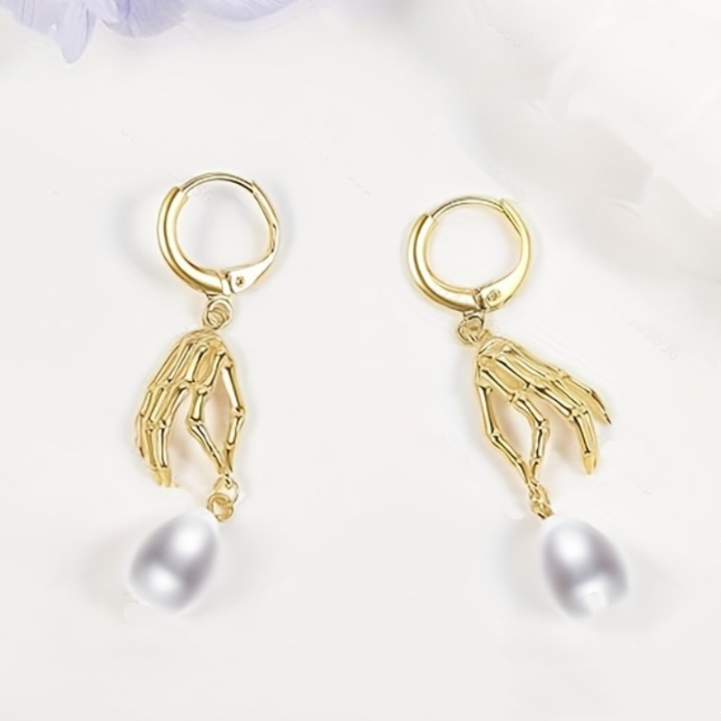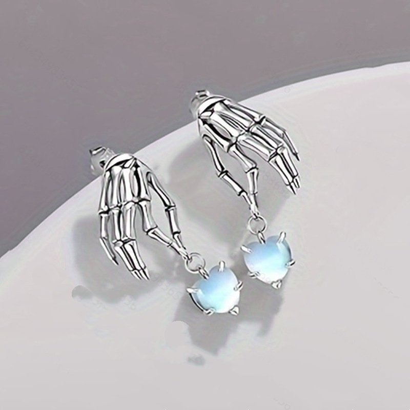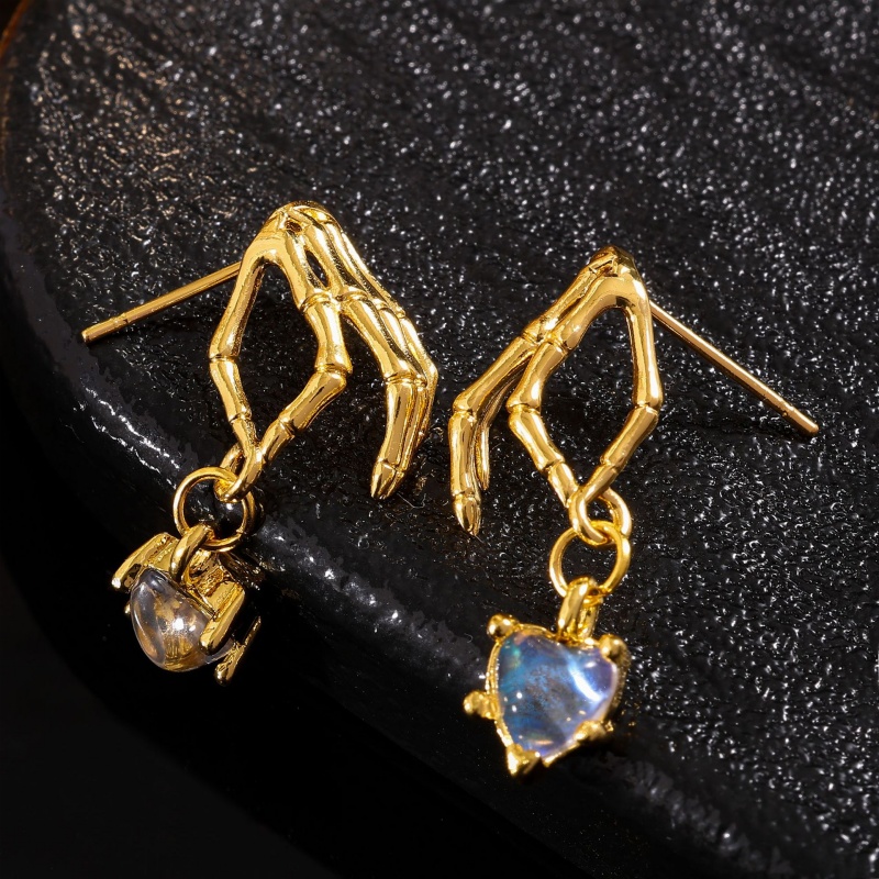 Color: Ghost hand love ruby earrings-white gold, ghost hand love ruby earrings-black, ghost hand love moonstone earrings-Silver, ghost hand love moonstone earrings-Gold, Gold Ghost hand pearl earrings-round, gold Ghost hand pearl ear clip-Oval
