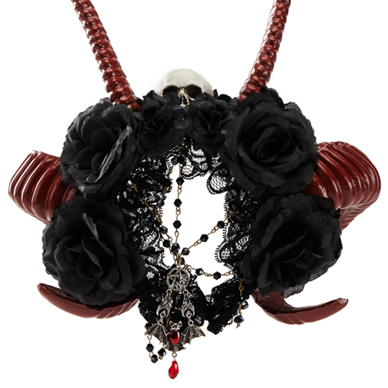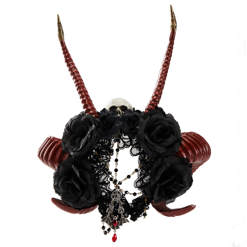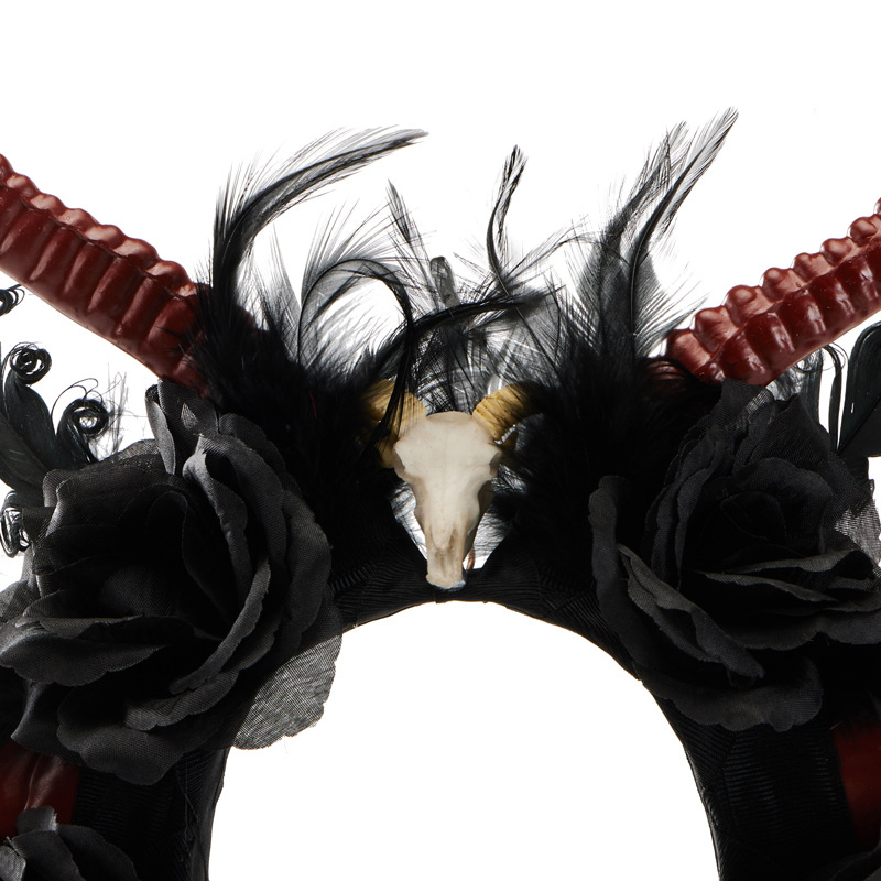 Gothic Dark Devil Horn Skull Halloween Red Antelope Horn Headband