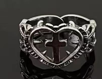 Gothic Heart Cross Open Ring, Vintage Punk Statement Band, Dark Romantic Adjustable Ring For Women