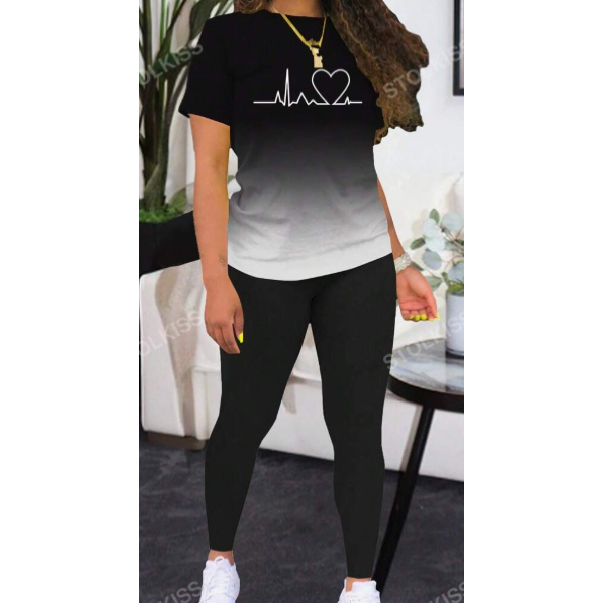 Gradient Heart Pattern Print Short Sleeve T-Shirt And Leggings Sports Suit