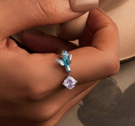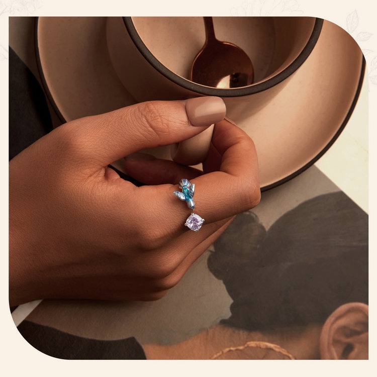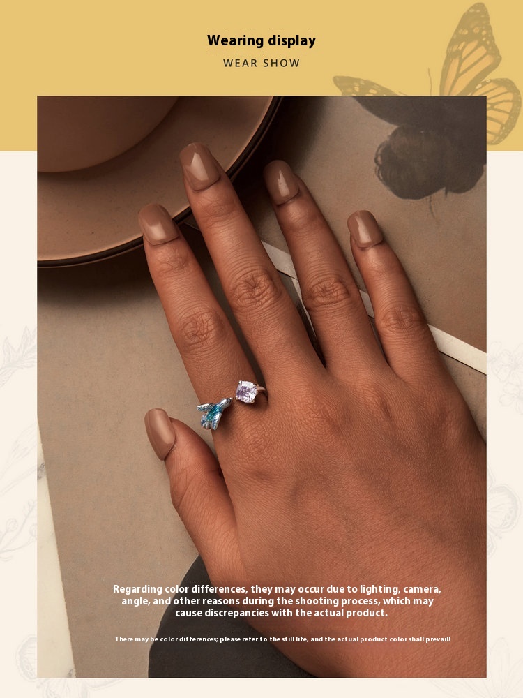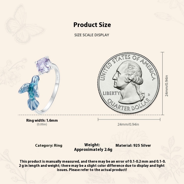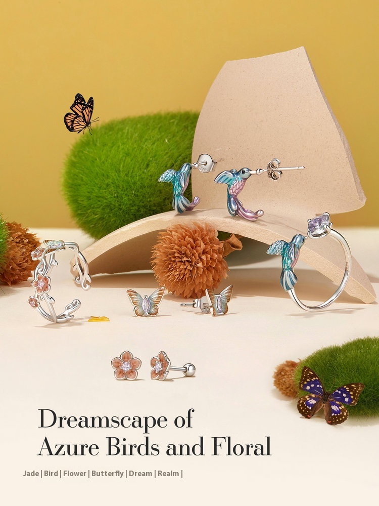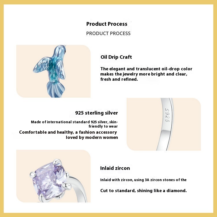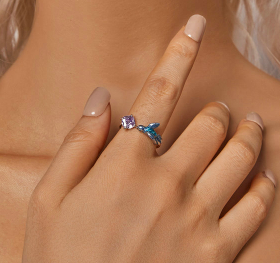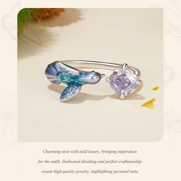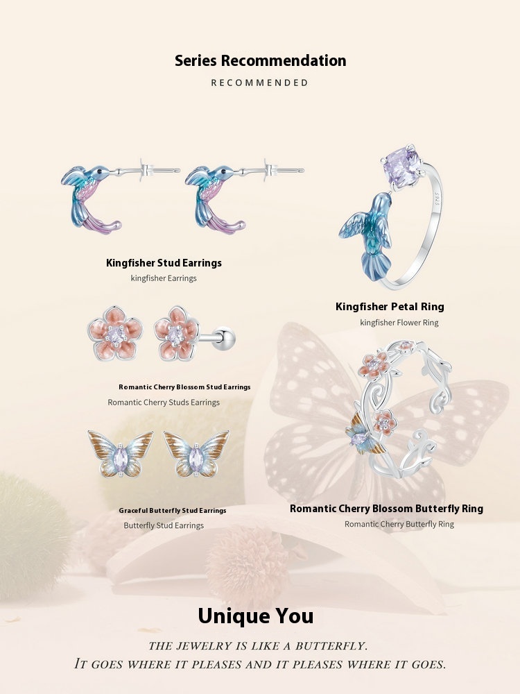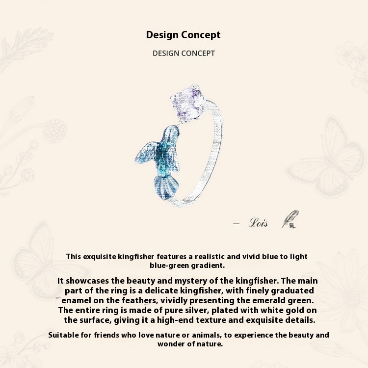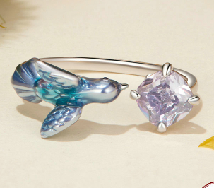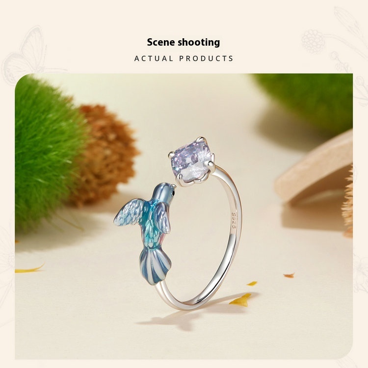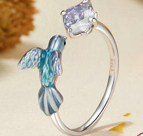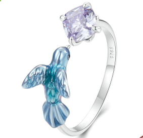 Gradient Kingfisher Petal Opening Smart Bird Sterling Silver Ring