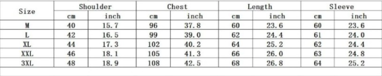 Size: M, L, XL, XXL, XXXL, XXXXL