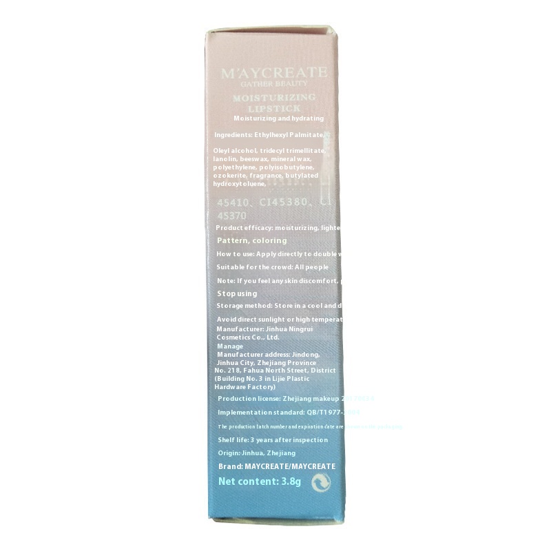 Product effect: moisturizing, diminishing lip lines, lasting coloring.