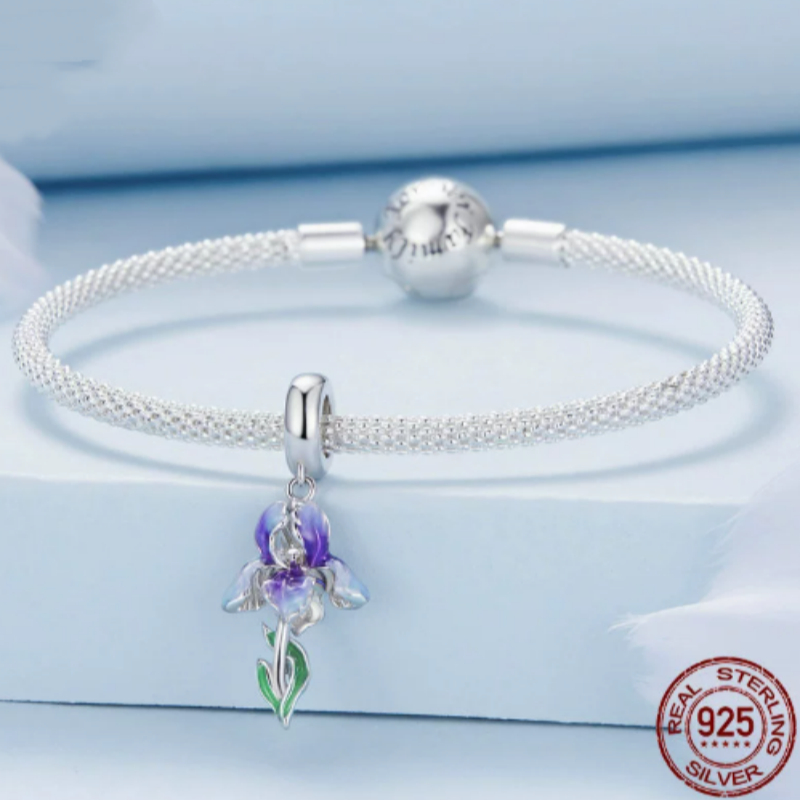 Name: Iris Flower Pendant - 925 Silver Beads