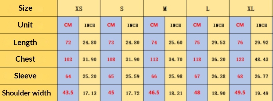 1. Asian sizes are 1 to 2 sizes smaller than European and American people. Choose the larger size if your size between two sizes. Please allow 2-3cm differences due to manual measurement. 2. Please check the size chart carefully before you buy the item, if you don't know how to choose size, please contact our customer service. 3.As you know, the different computers display colors differently, the color of the actual item may vary slightly from the following images.