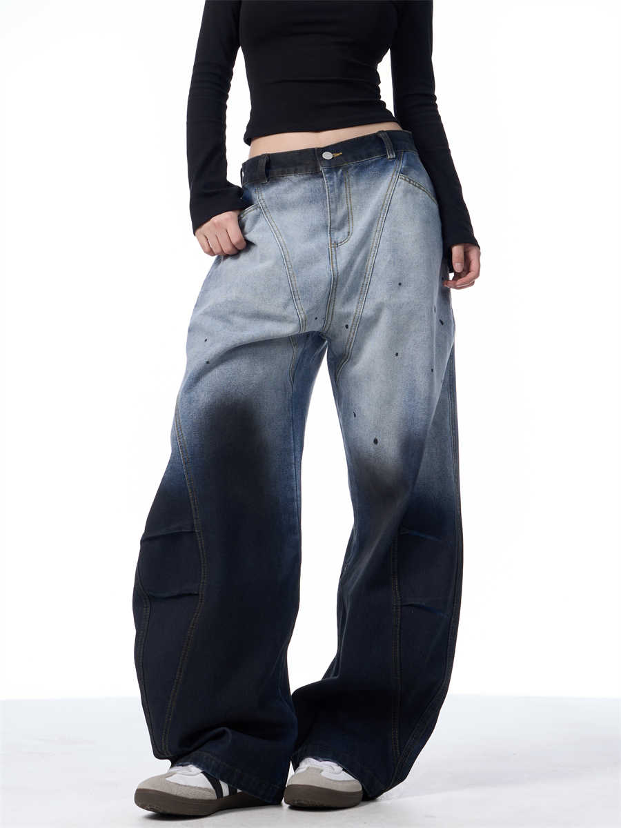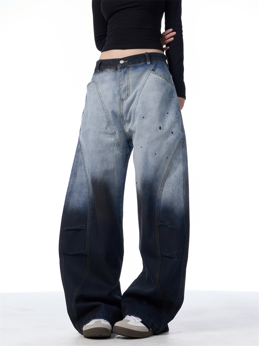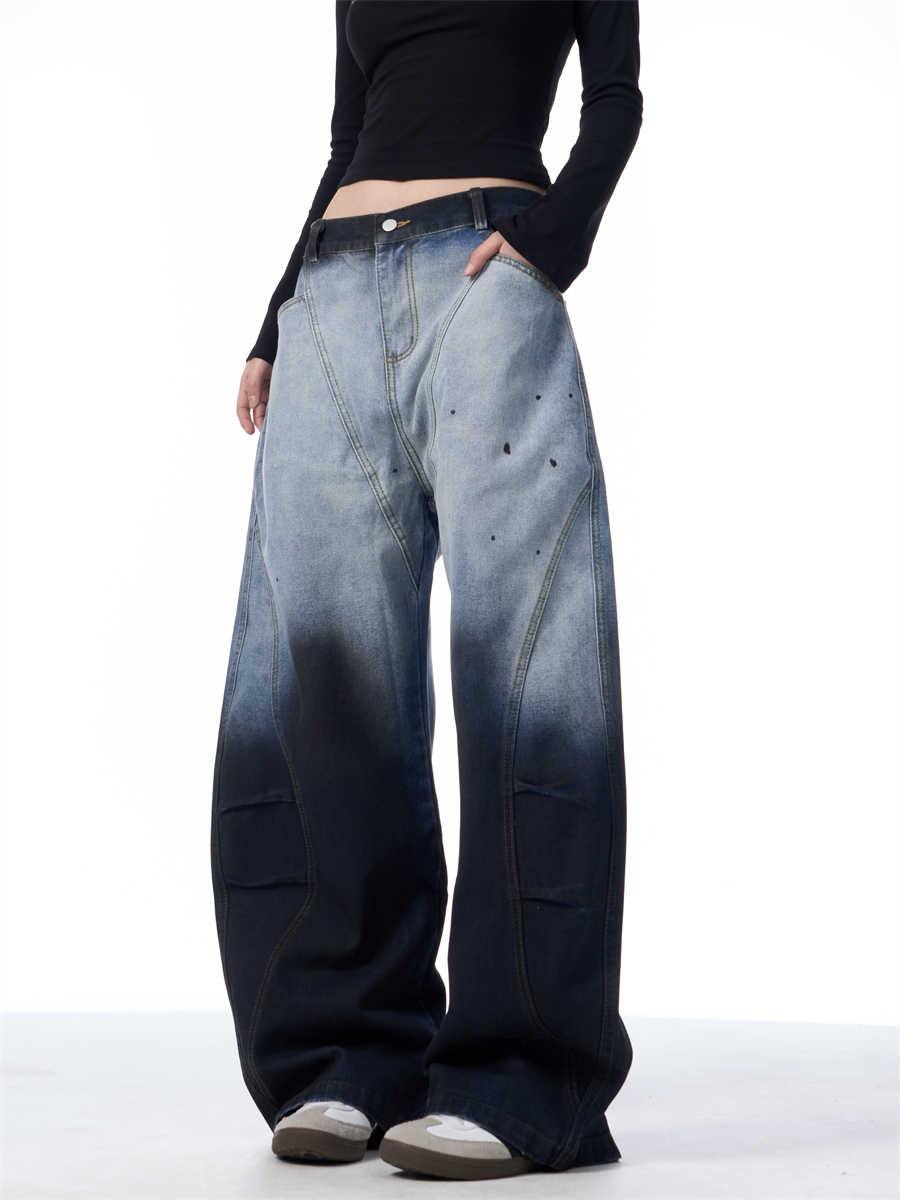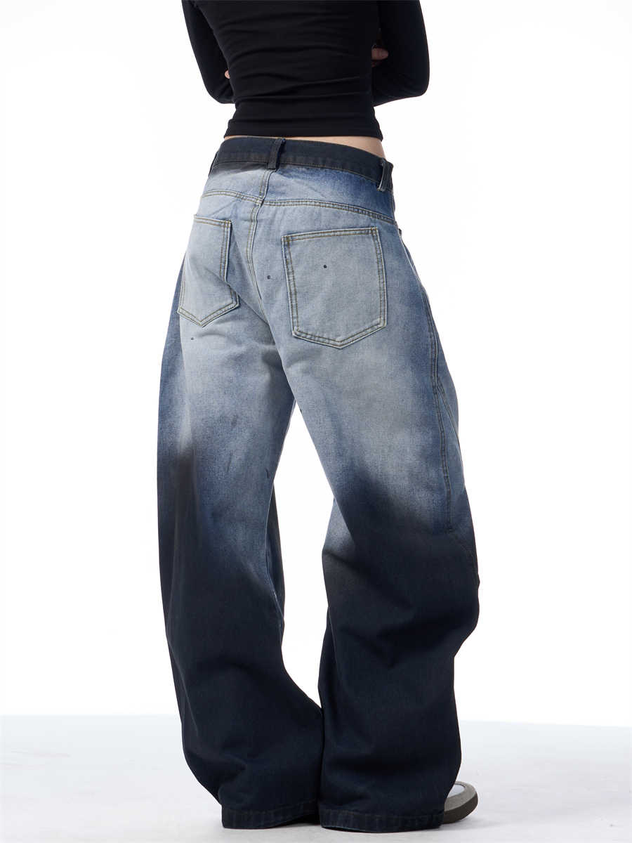 Gradient Tie-dye Machete Jeans Women's Wide-leg Trousers