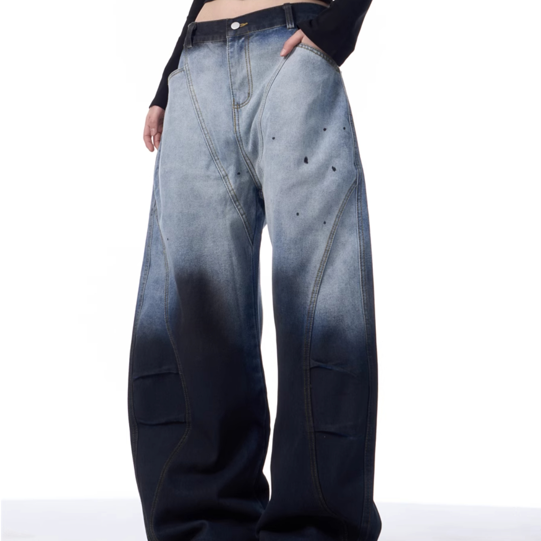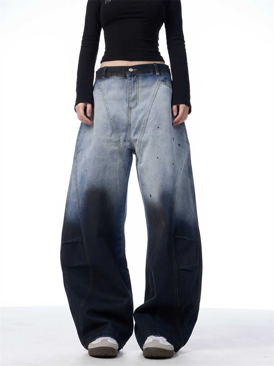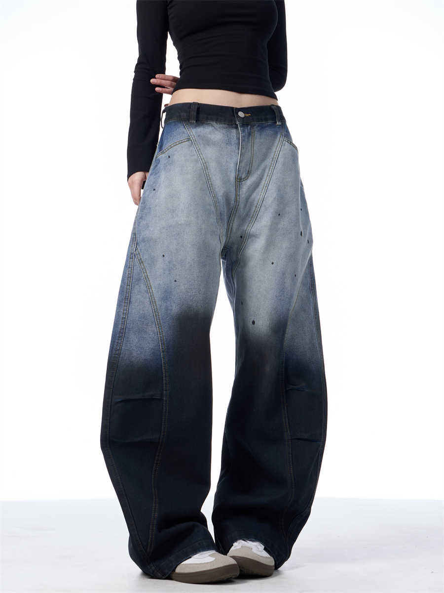 Gradient Tie-dye Machete Jeans Women's Wide-leg Trousers