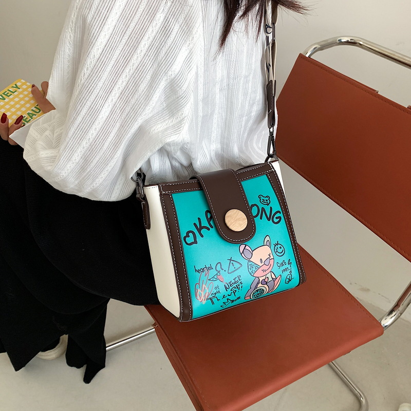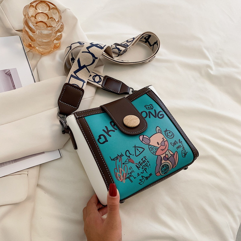Graffiti Bear Wide Shoulder Bucket Bag