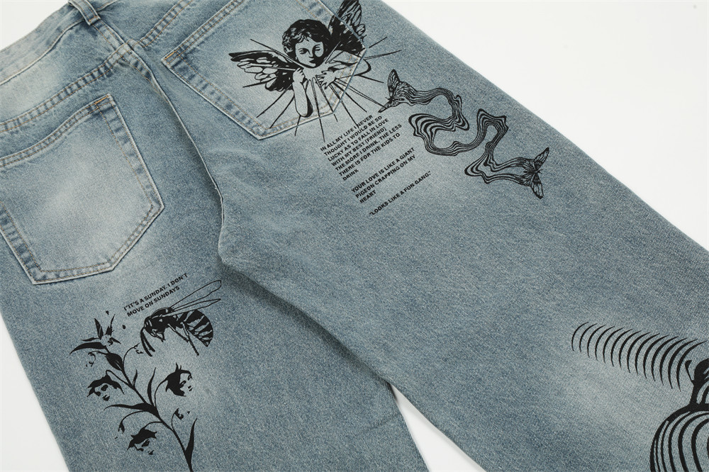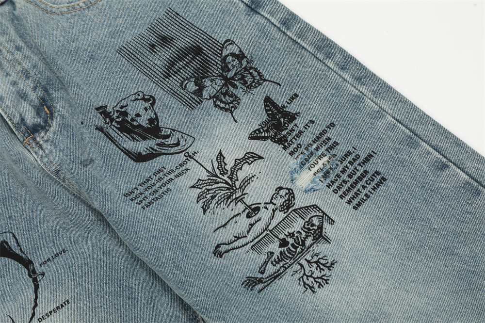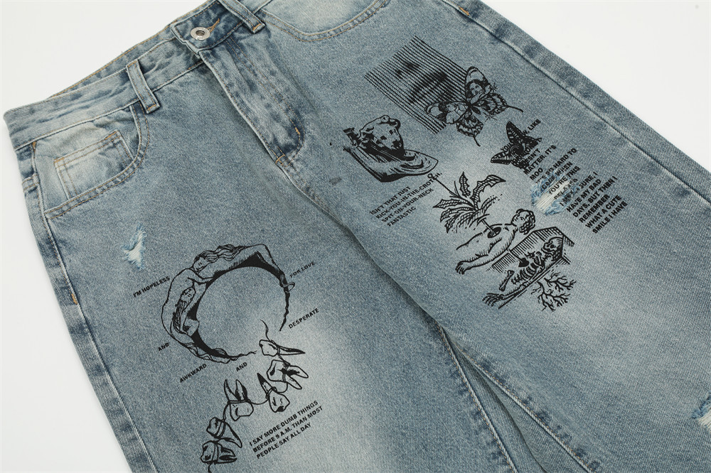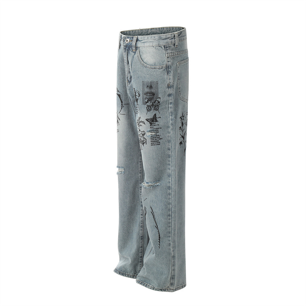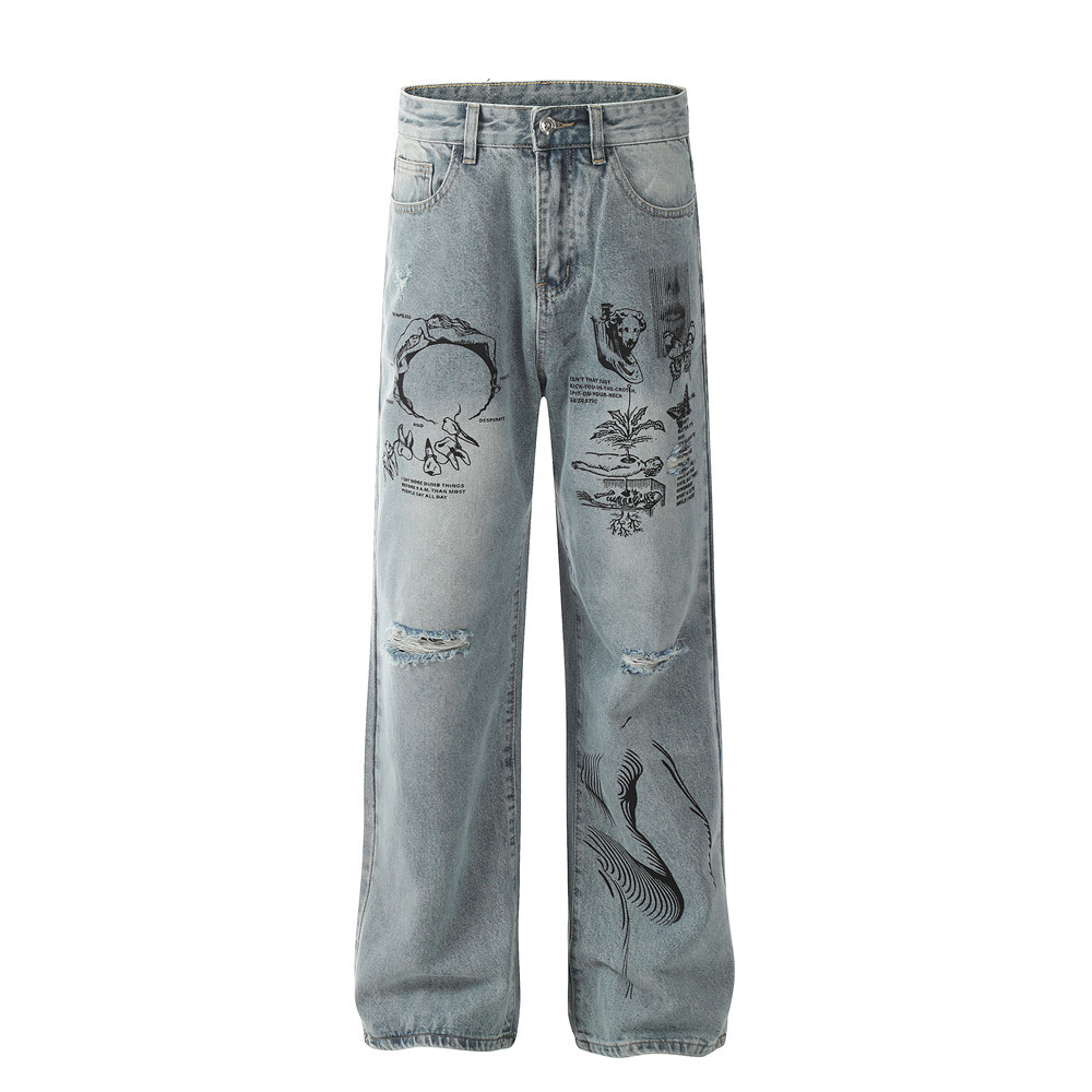 Graffiti Printing Ripped Jeans For Men