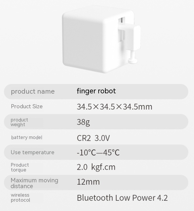 Specifications :Generation Finger Robot White, Generation Finger Robot Black, 05 White Zigbee Finger Robot Programmable Touch Button,05 Black Zigbee Finger Robot, 04 White Bluetooth Finger Robot Programmable Touch Button,04 Black Bluetooth Finger Robot Programmable Touch Button, Bluetooth Gateway, Fingerbot-02 Accessories Applicable To 1 Generation 4 Generation, Mini Zigbee Gateway, Mini Multi-mode Gateway, New 06 White Bluetooth Charging Robot, Finger Robot White, Finger Robot Blue