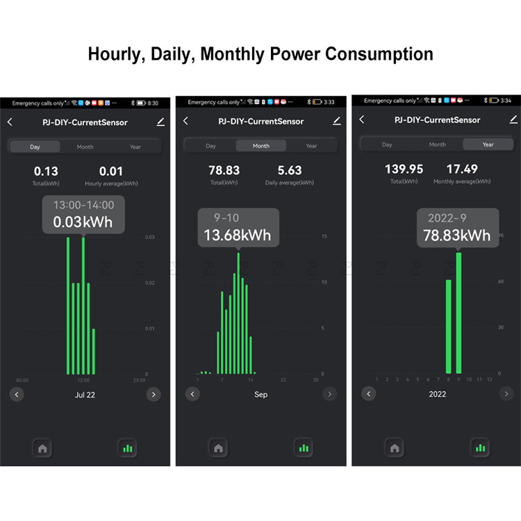 1. Real-time monitoring of the voltage, current and power of energy consumption in kWh
