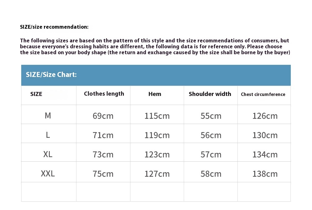1. Asian sizes are 1 to 2 sizes smaller than European and American people. Choose the larger size if your size between two sizes. Please allow 2-3cm differences due to manual measurement. 2. Please check the size chart carefully before you buy the item, if you don't know how to choose size, please contact our customer service. 3.As you know, the different computers display colors differently, the color of the actual item may vary slightly from the following images.