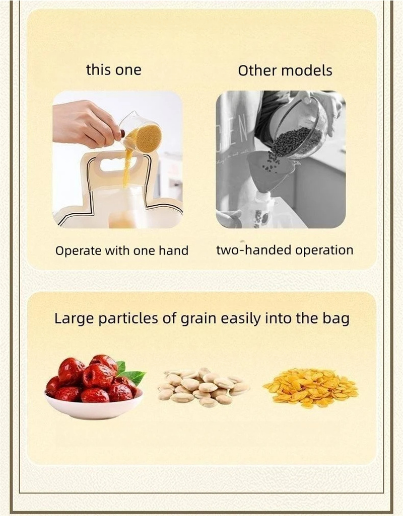 3. Convenience: The storage bag can well store all kinds of coarse grains at home, sorted and placed, easy to take