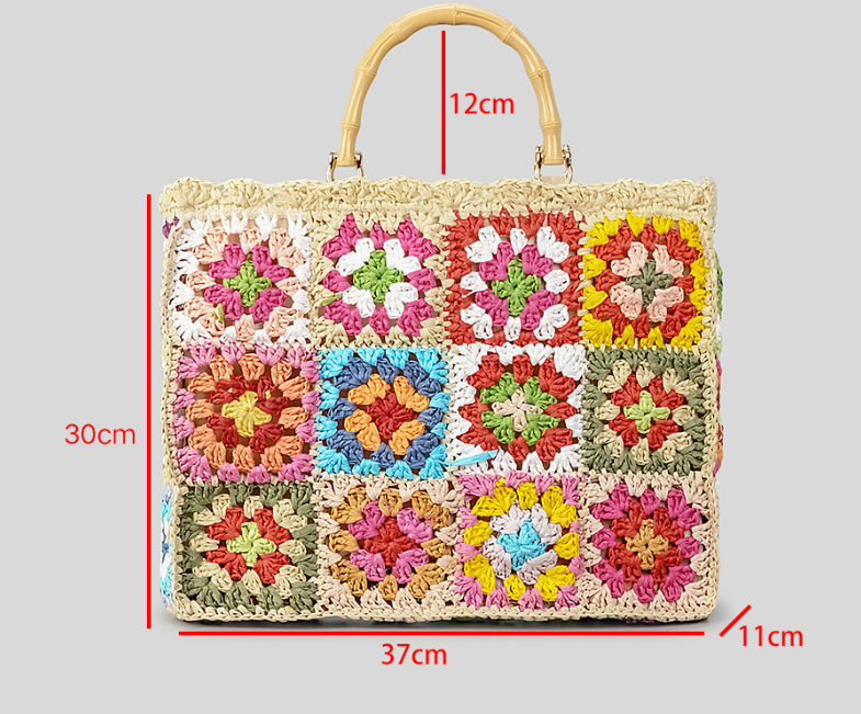 Grandmother Contrasting Color Grass Woven Bag Women's Bamboo Festival