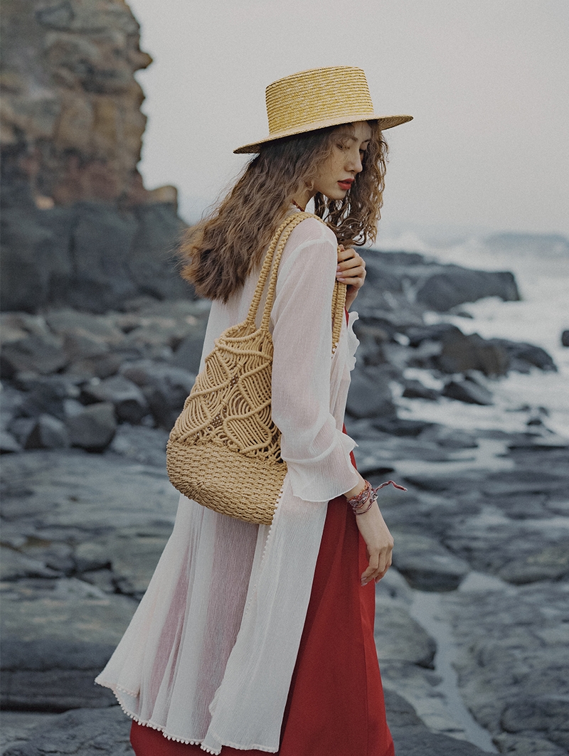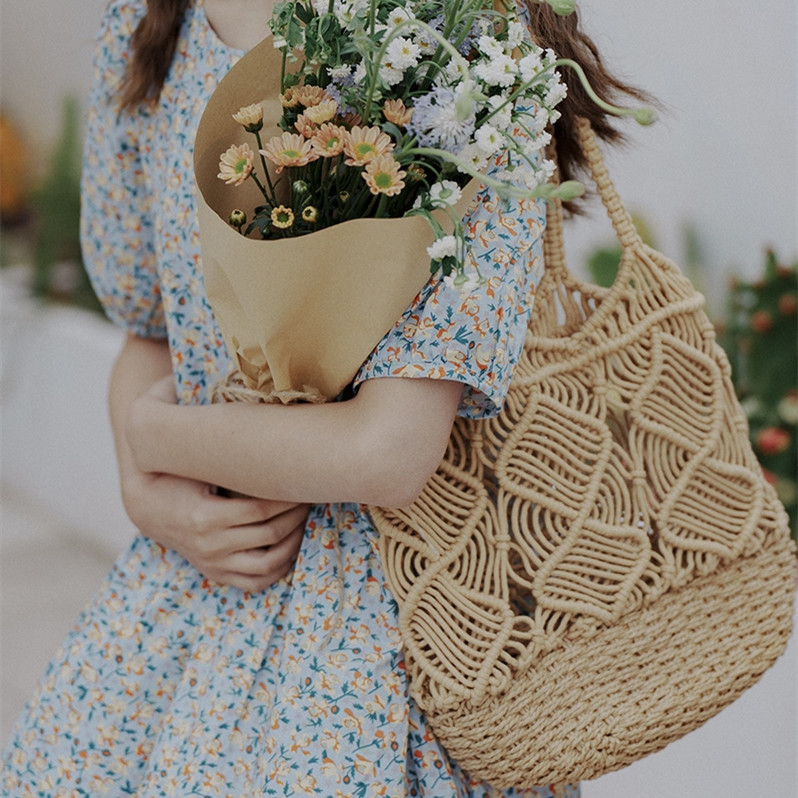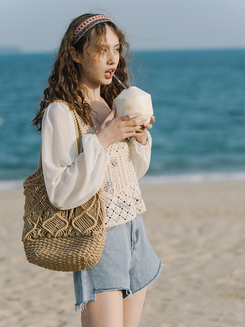 Grass Woven Hollowed Out Hand Woven Bag Beach Shoulder