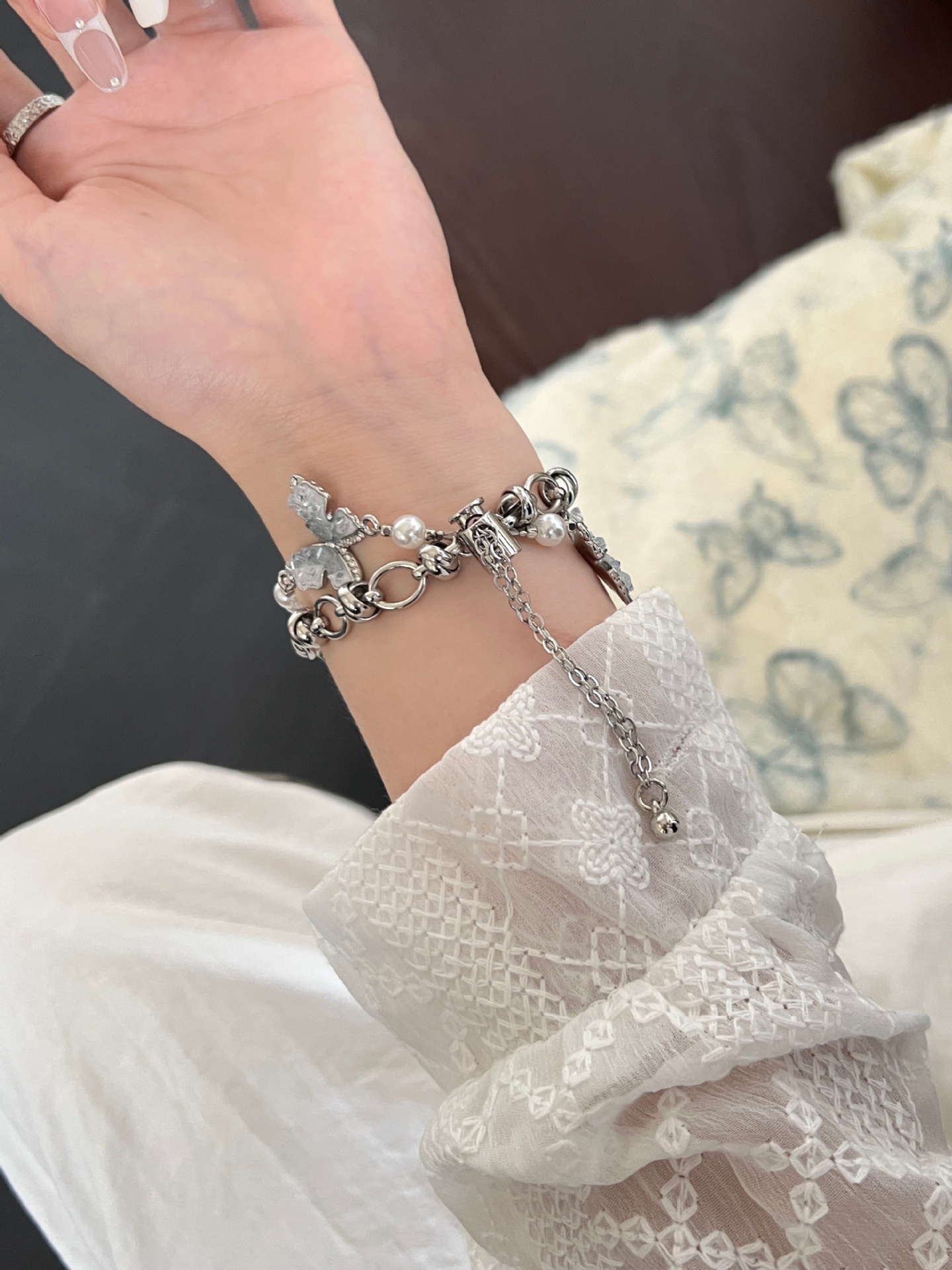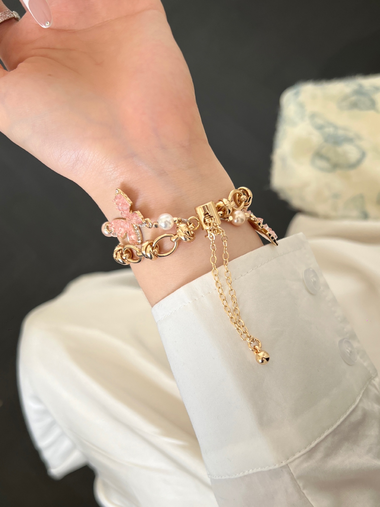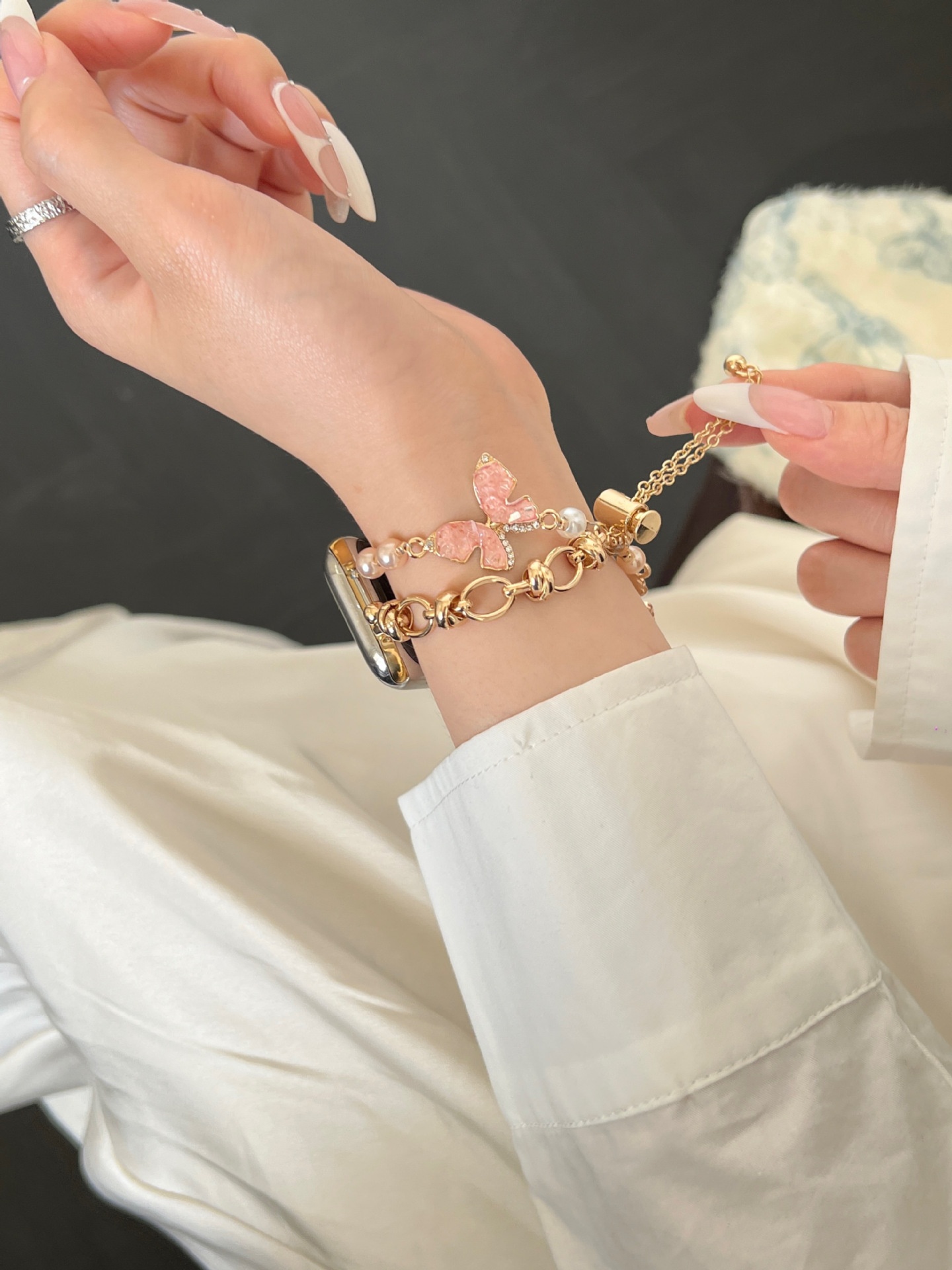 Color: double row Pearl butterfly rose gold necklace, ring chain butterfly rose gold necklace, ring chain butterfly silver necklace, double row Pearl butterfly silver necklace, double row Pearl butterfly gold necklace, ring chain butterfly gold necklace