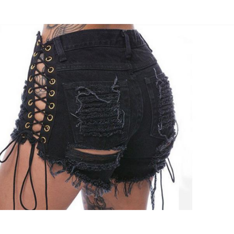 Sexy summer women denim black ripped short jeans