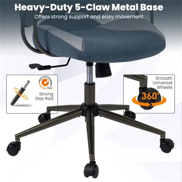 Gray Blue Color Blocking Office Chair With 2D Adjustable Headrest, Ergonomic High-Back Desk Chair 330 Lbs Capacity
