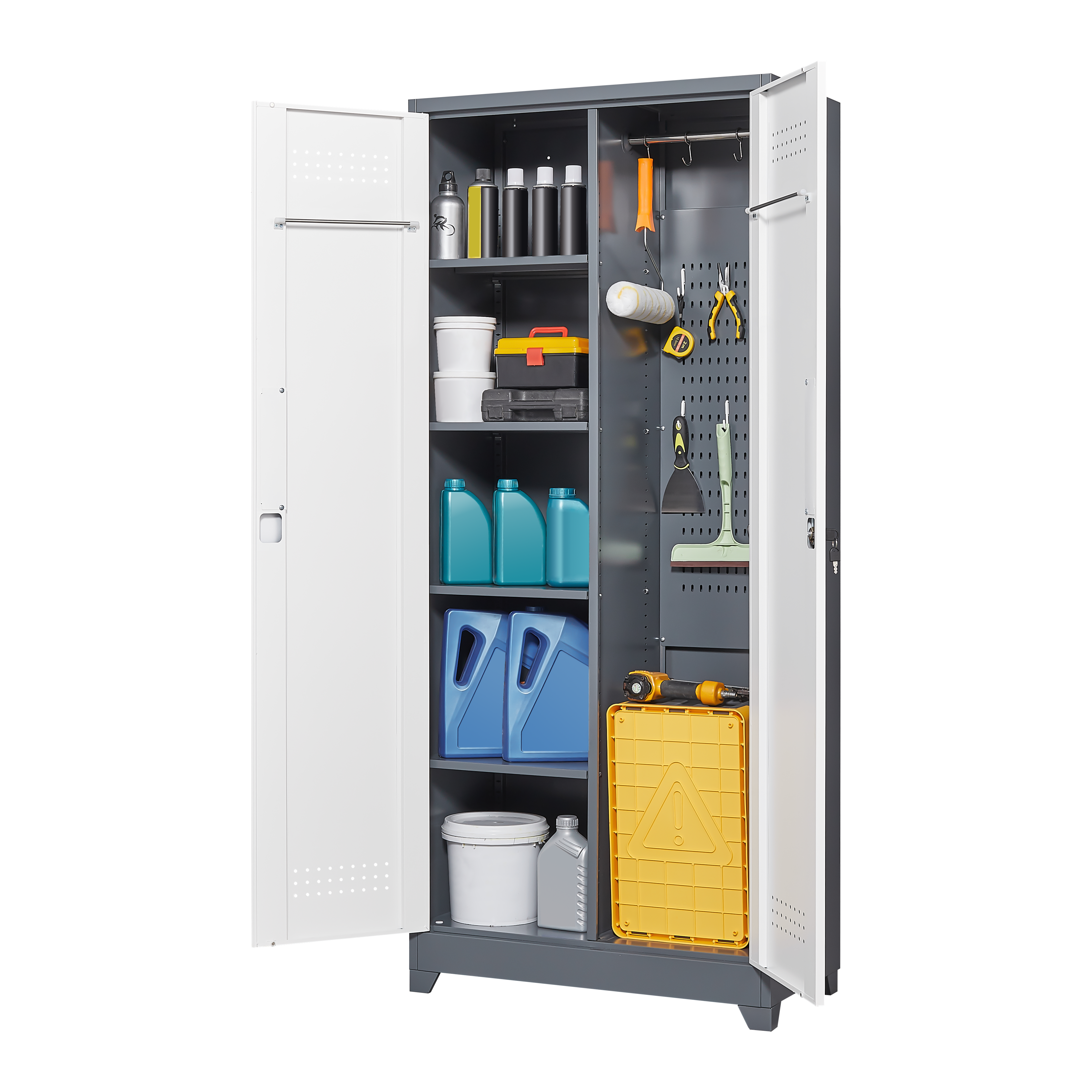 Product Name:Gray Metal Lockers, Cleaning Tool Cabinets With Locking Doors, High Broom Tool Storage Cabinets, Adjustable Shelves, Large Cabinets For Kitchens, Offices, Shops.(72 Inches)