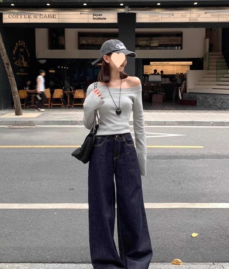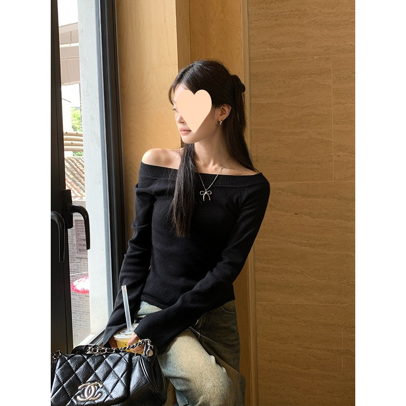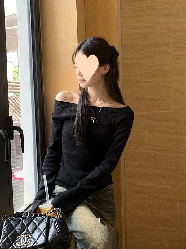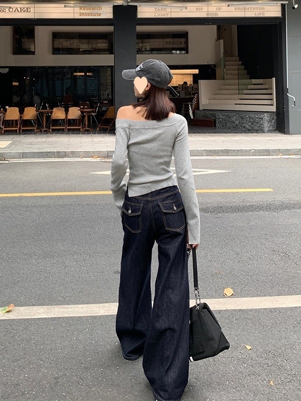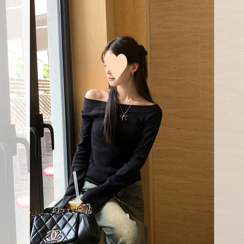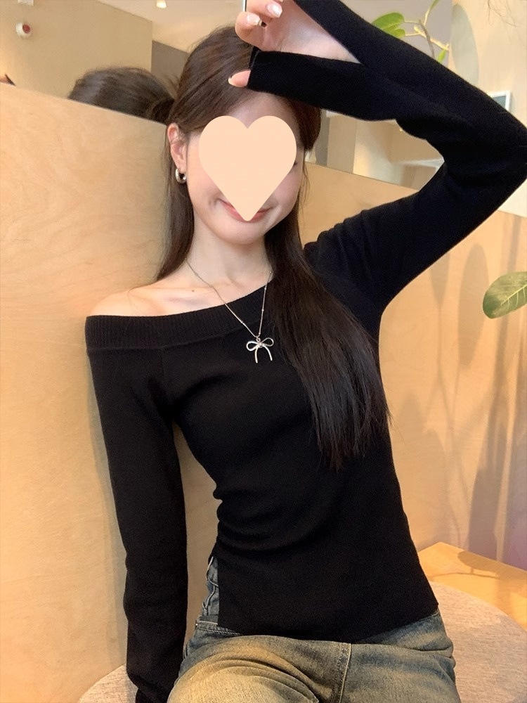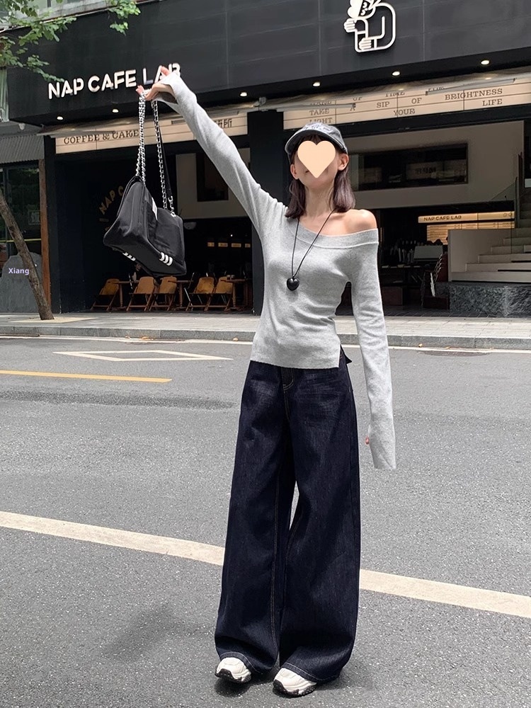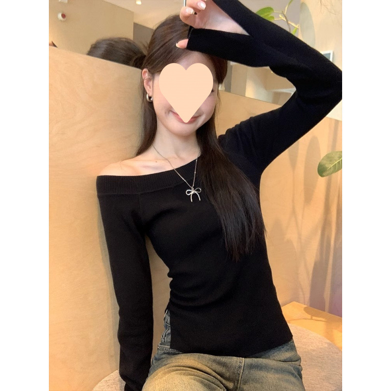 Gray Strapless Sloping Shoulder Long-sleeve T-shirt Women