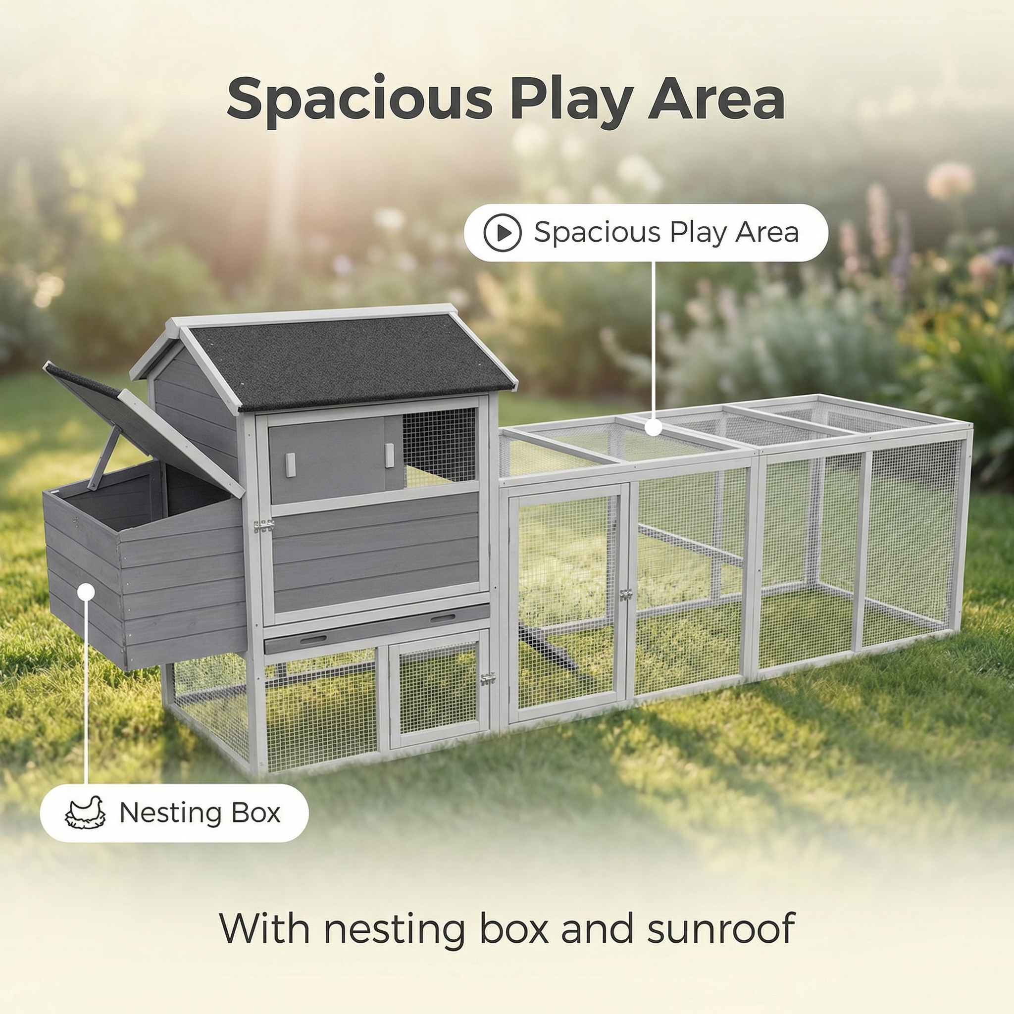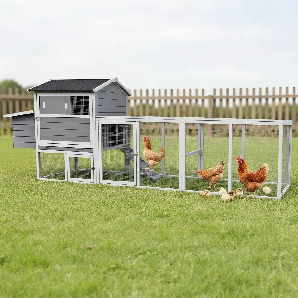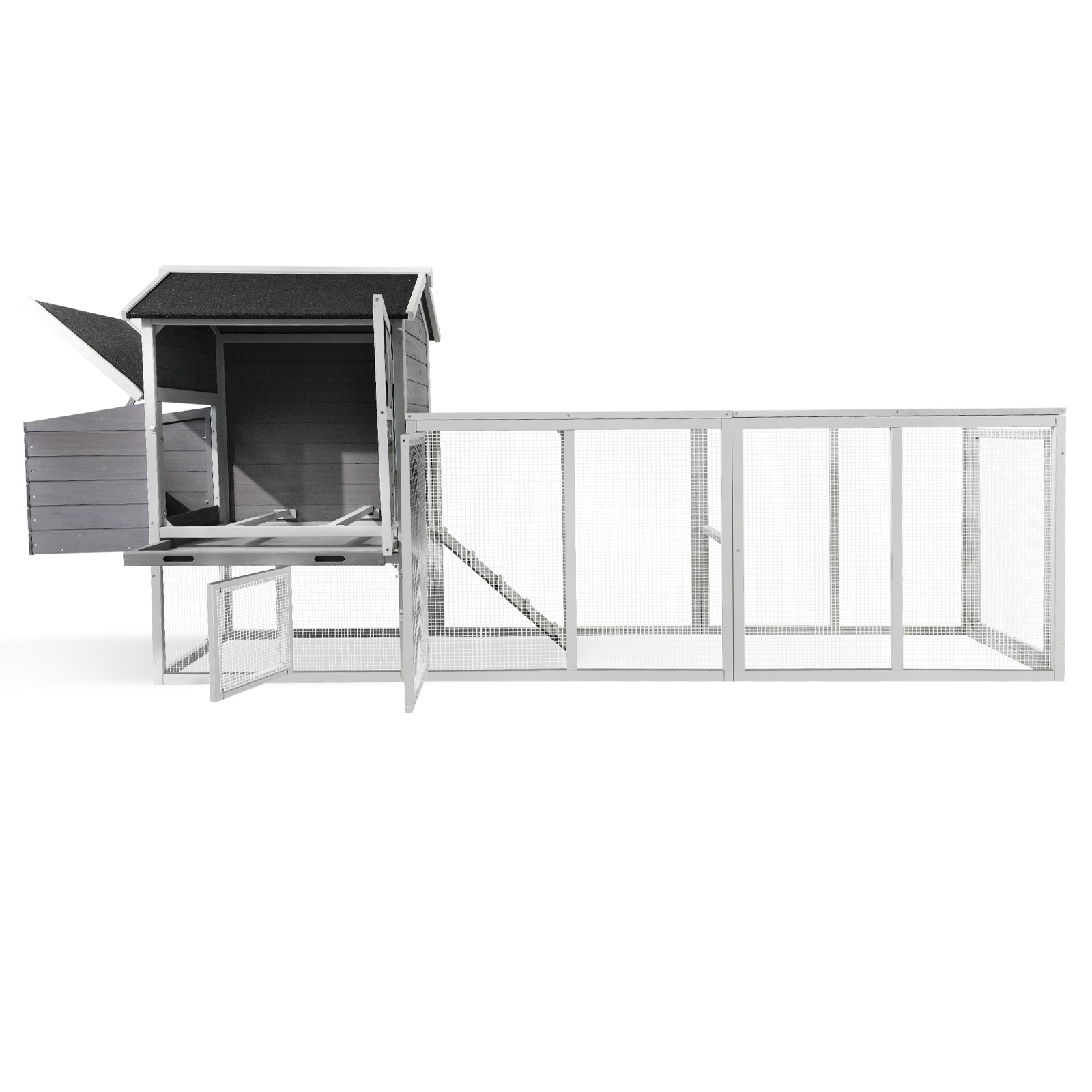 Product Name:Gray Wooden Chicken Coop, Large Outdoor Hen House with Run and Nesting Box Poultry Cage, Rabbit Hutch, Waterproof Anti-UV Panel for Backyard