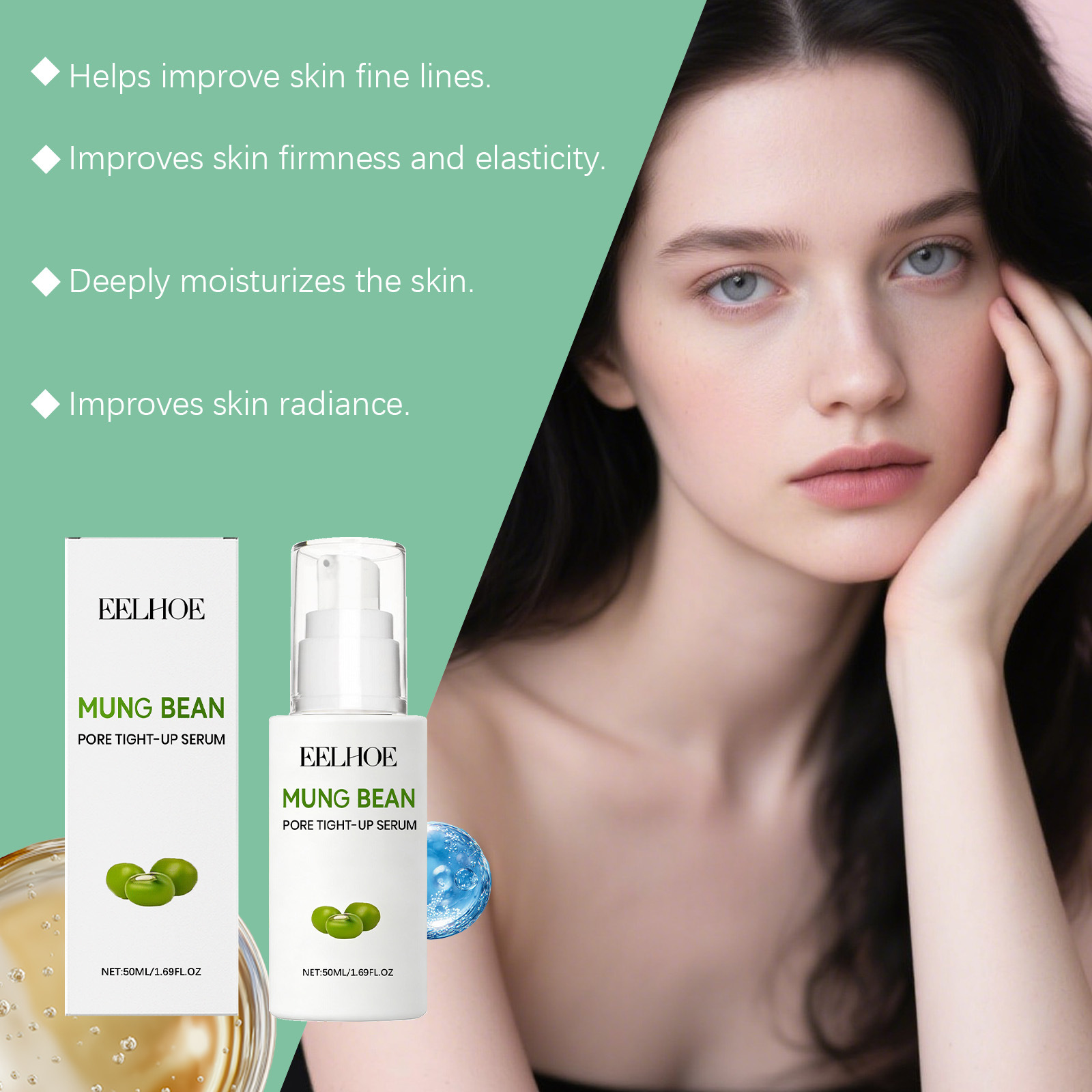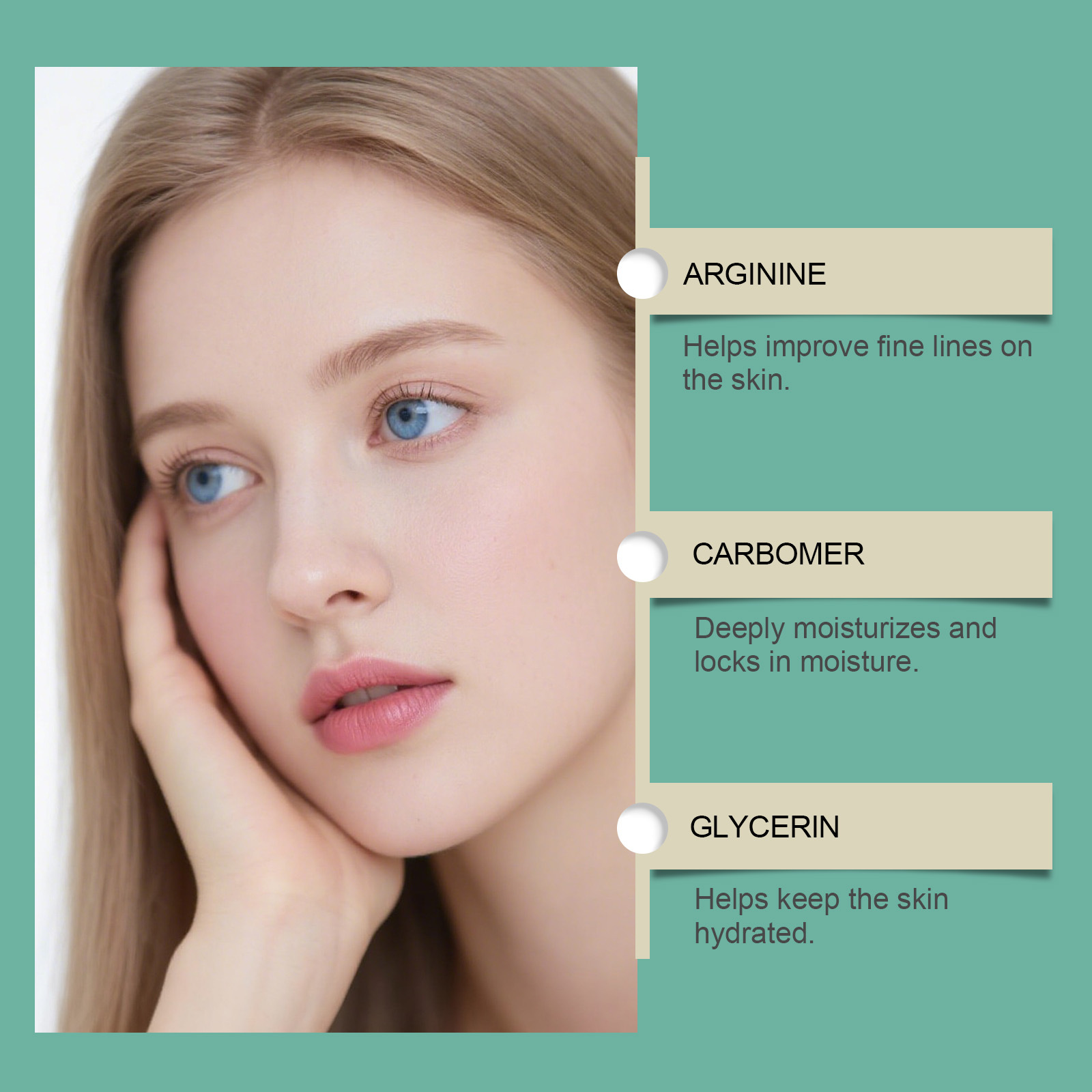 Product information:Ingredients: water, glycerin, 1,2- hexanediol, carbomer, arginine and mung bean extract.