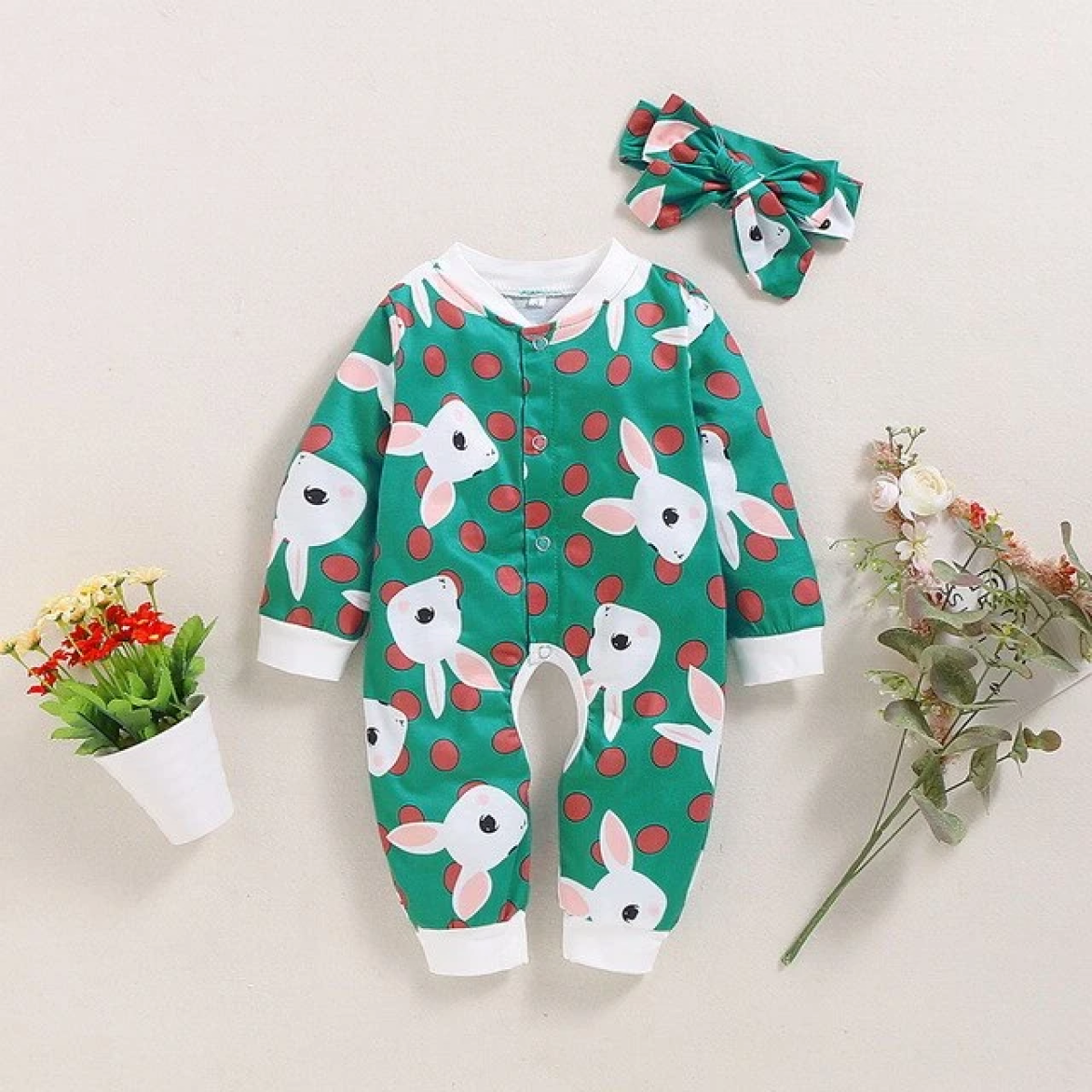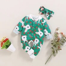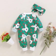 Green cartoon rabbit print hooded turban