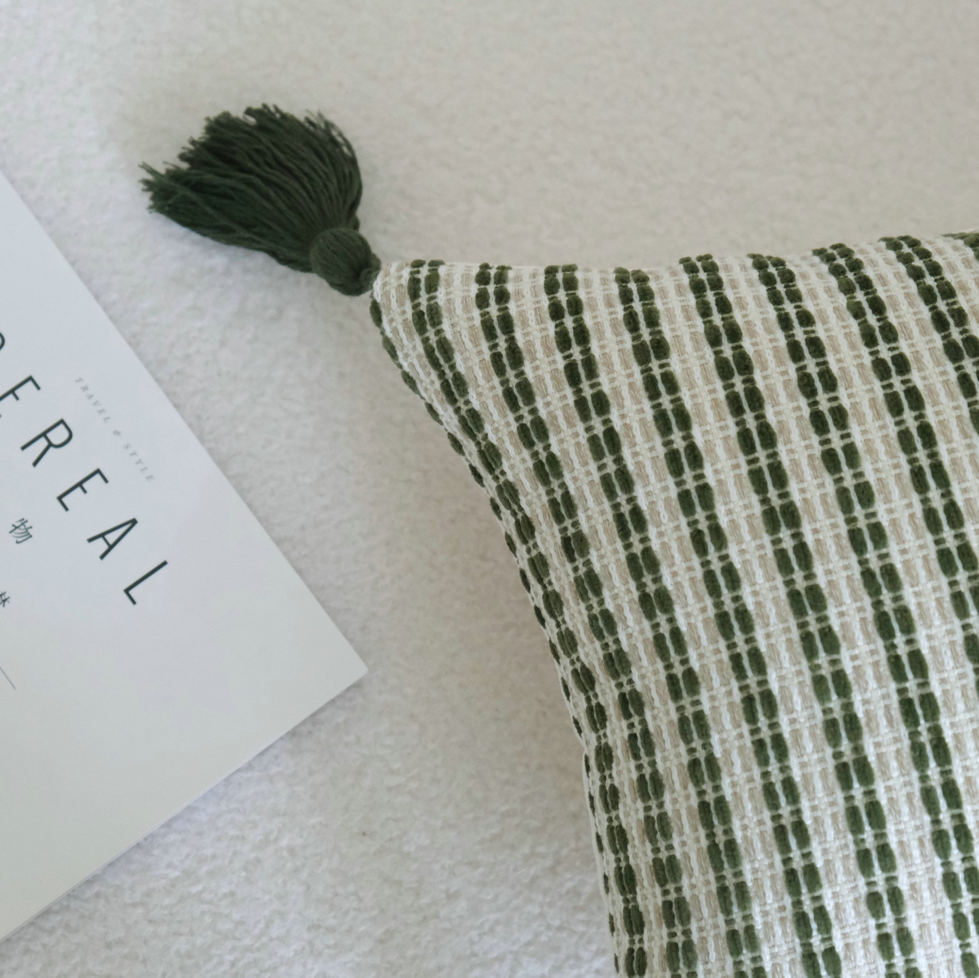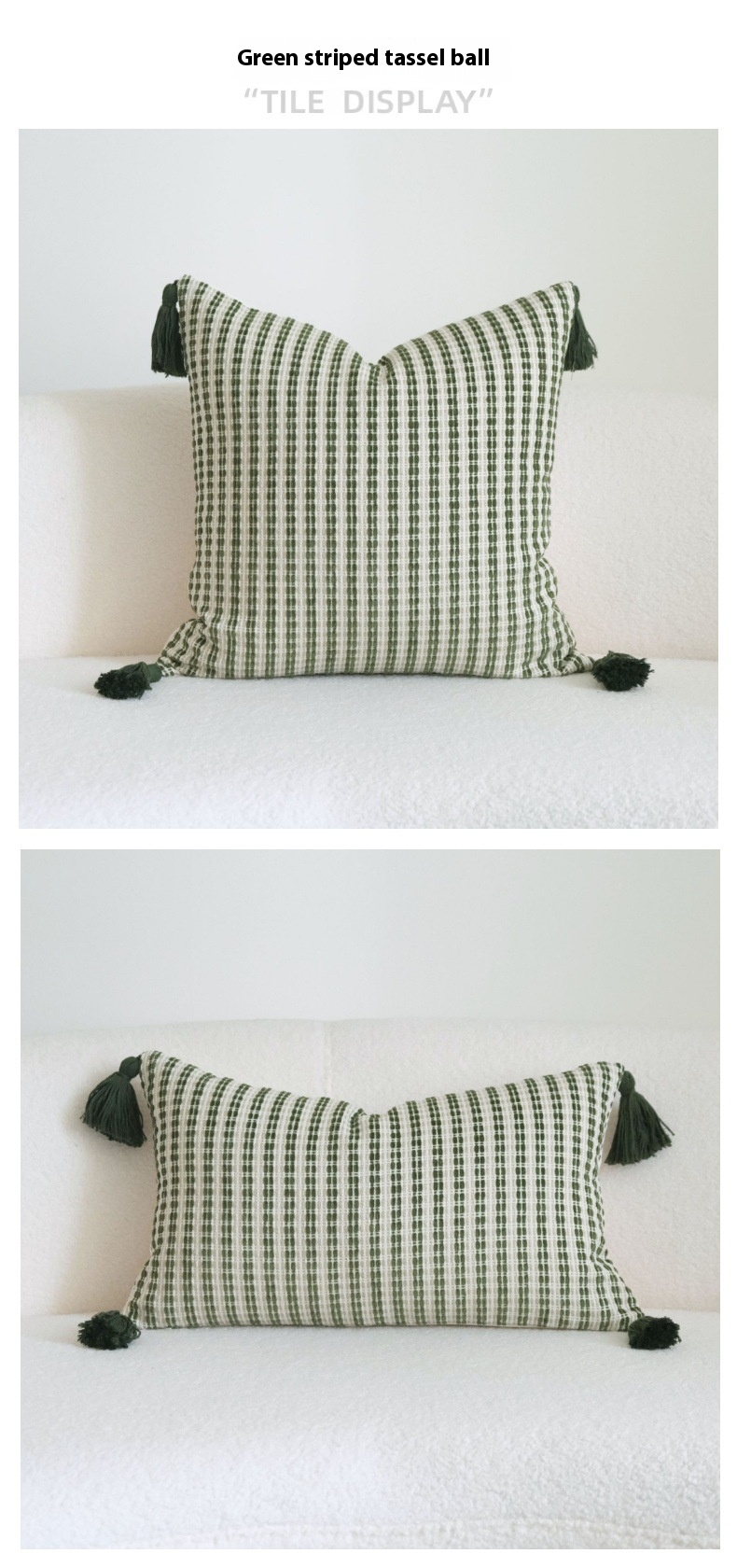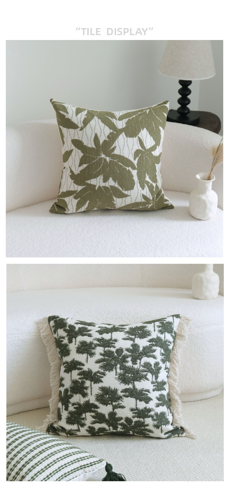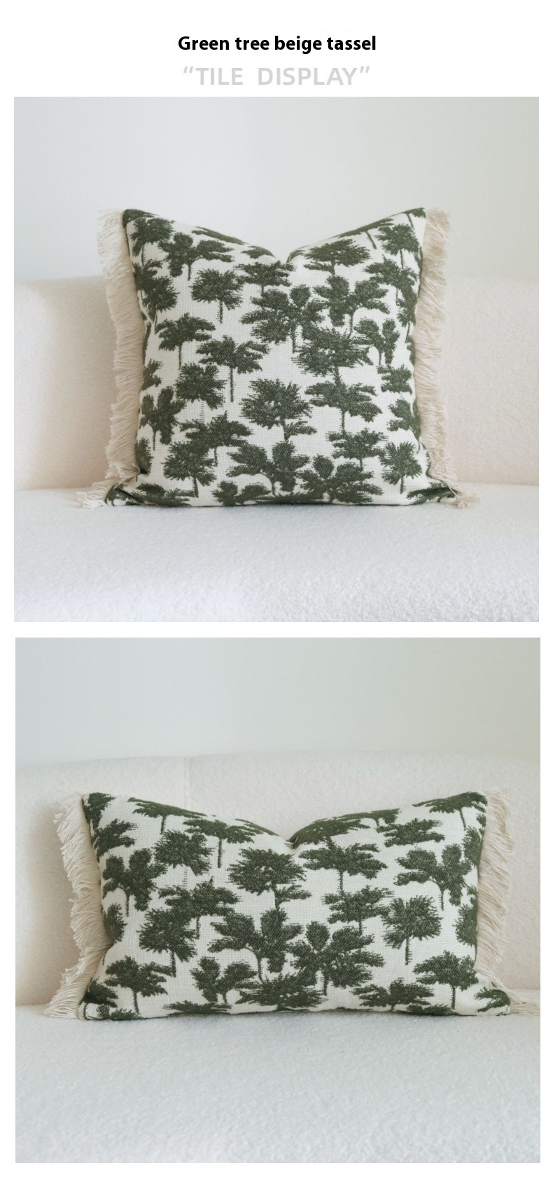 Color: green stripes fringed beaded, green trees beige tassel, green big leaves