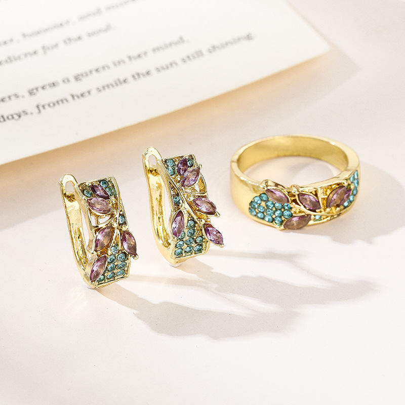 Green Leaves Shape Inlaid With Purple The Crystal Set