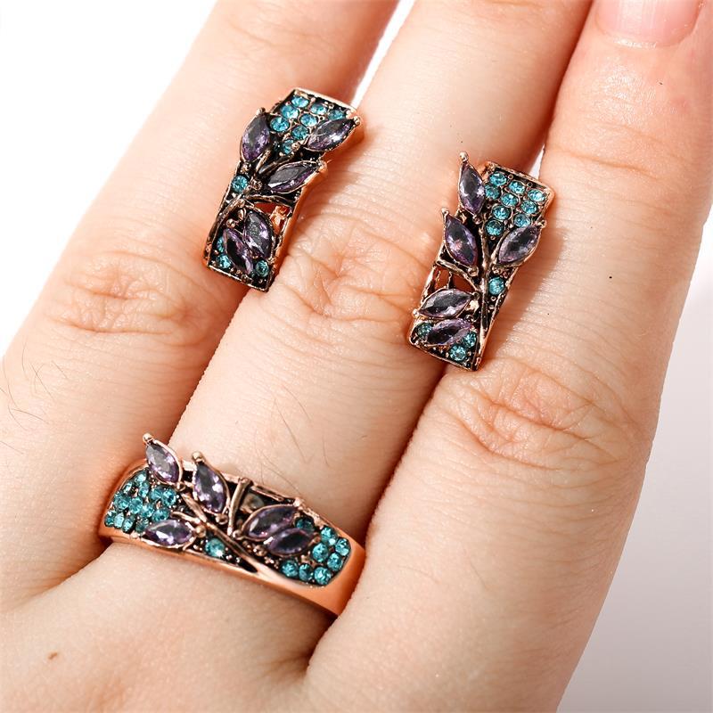 Color: ATZ010 rose gold ring earrings, ATZ010 ring earrings gold