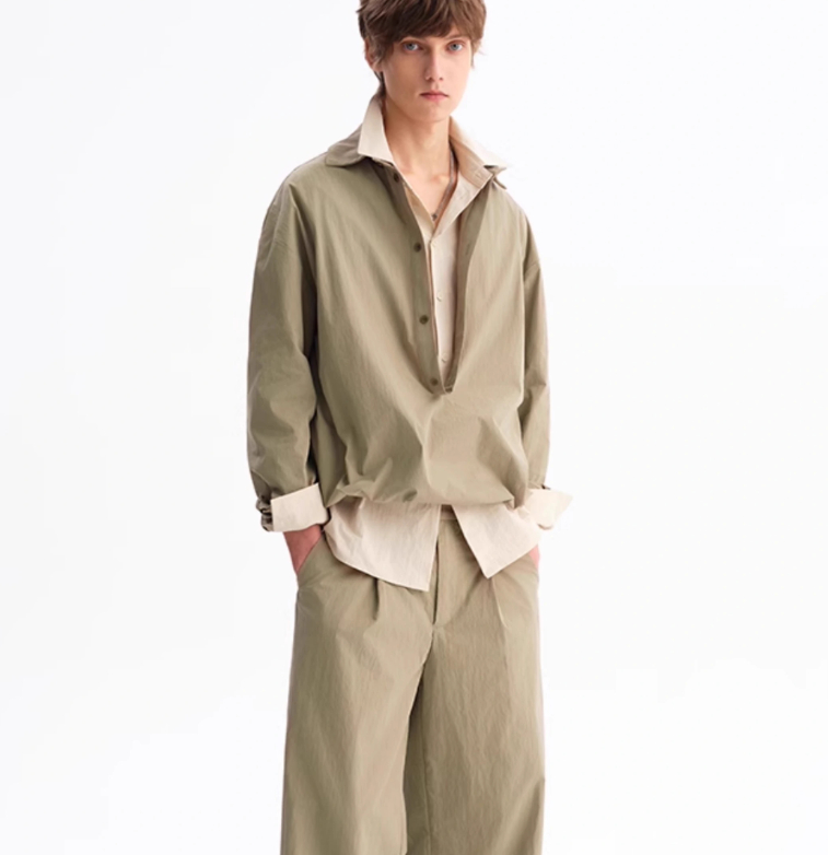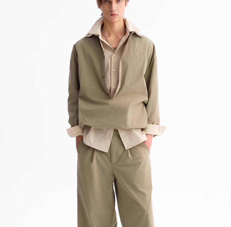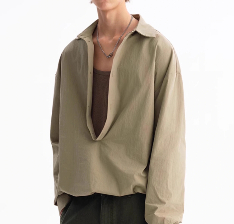 Green Leisure Commute Deep V Elastic Lower Hem Loose Long Sleeve