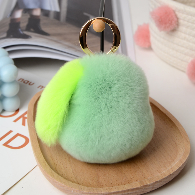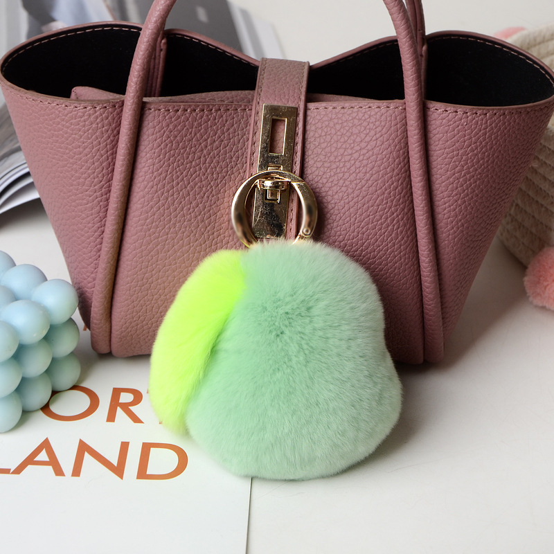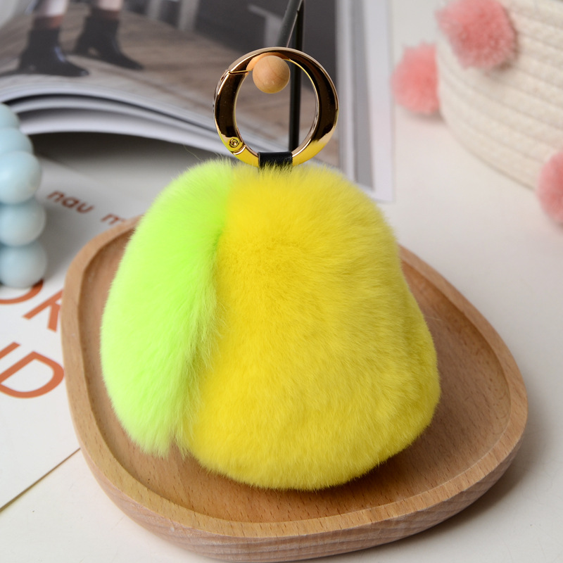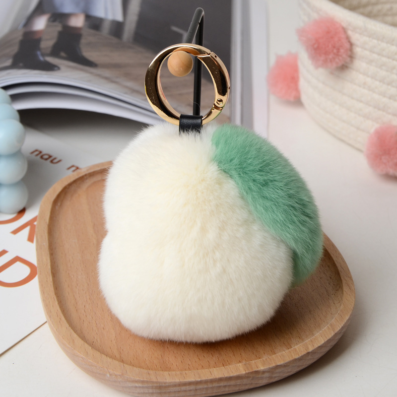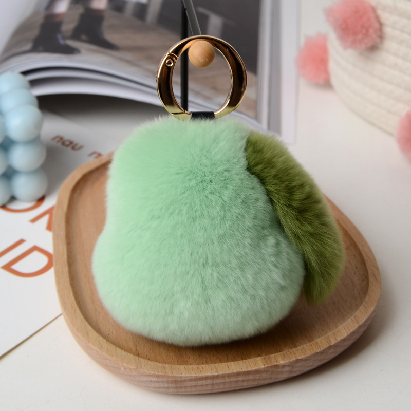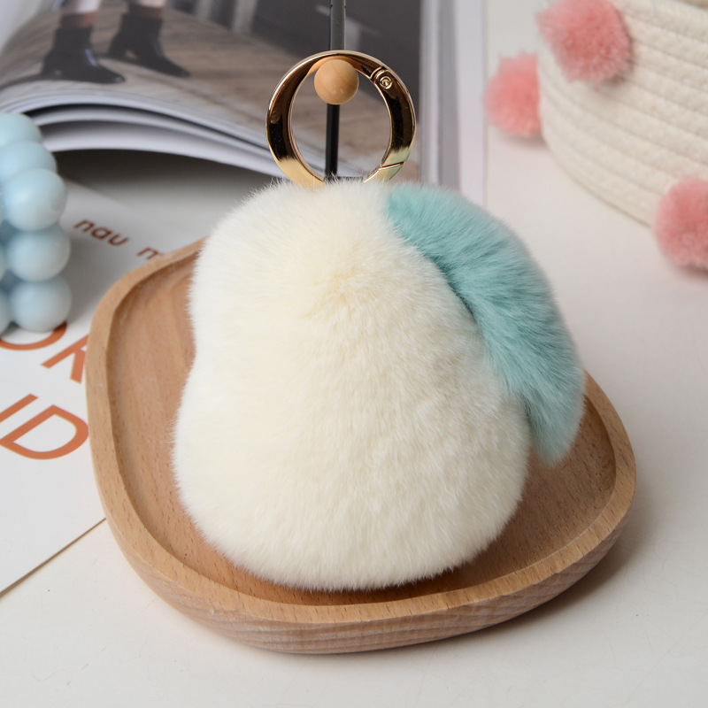 Real Rex rabbit fur key tag pompom fluffy key ring pear handmade fruit key chain handbag pendant