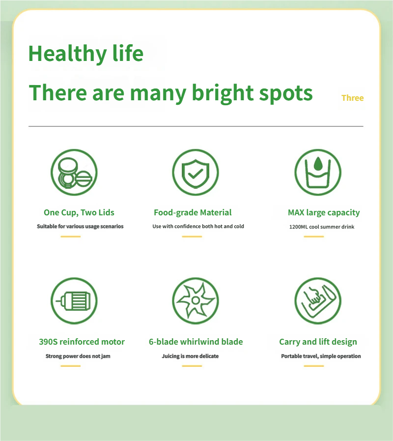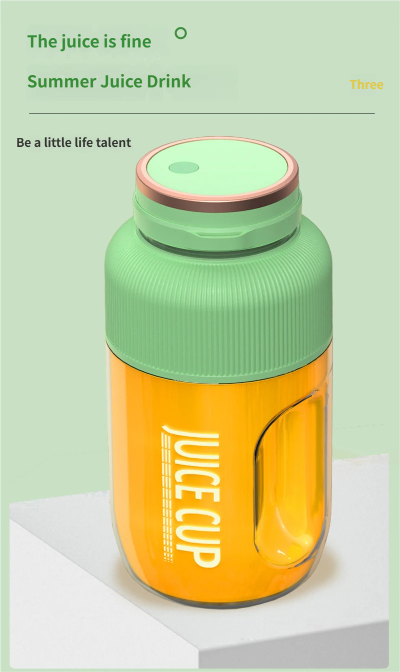 This green portable rechargeable juicer is a perfect daily companion for fresh juice lovers, featuring a 1001-1500mL large capacity and food-grade plastic body to meet your daily juice-making needs. With a power of ≤200W and safe low voltage (≤36V), it balances efficient juicing and energy saving, while the 18000RPM high rotation speed ensures quick and thorough juicing with rich pulp and high juice yield. Designed with a large round feeding port, it allows direct juicing of whole fruits and vegetables without tedious cutting, and the rechargeable design makes it portable for home, office, travel and outdoor use. The smooth injection-molded green shell is durable and easy to clean, bringing a convenient and healthy fresh juice experience to your life.