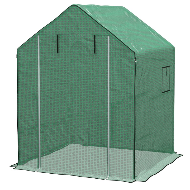 This replacement greenhouse cover keeps plant-growing going. Great for when the old one becomes unusable. The three-layer design merges two plastic pieces with a middle reinforcement layer, ensuring it is tough and durable. The roll-up door ensures easy access, with a roll-up door for easy access and windows to allow air inside. The UV-resistant coating gently allows sunlight through to encourage growth.