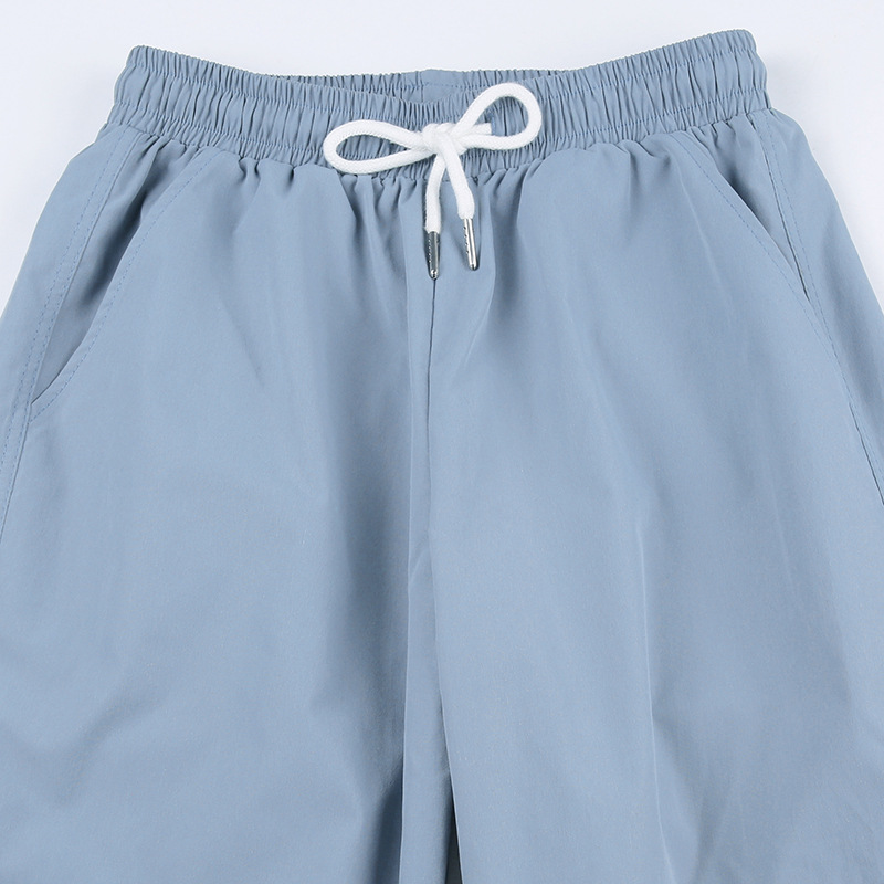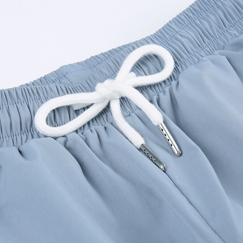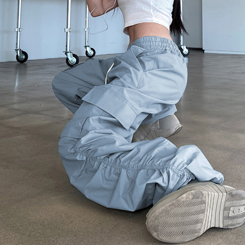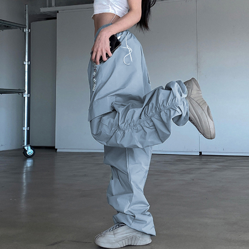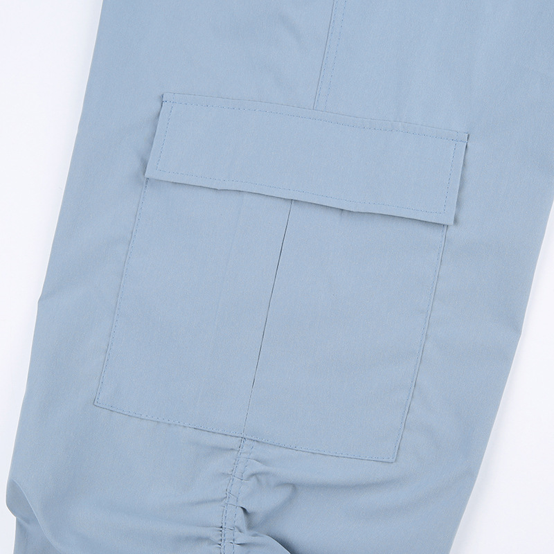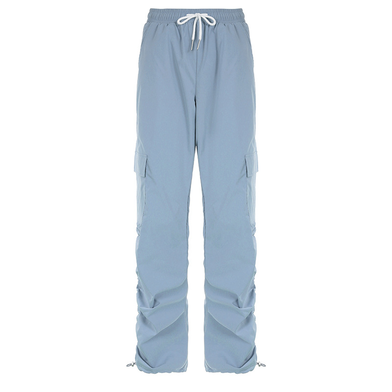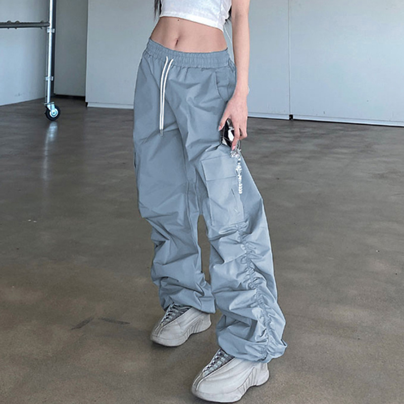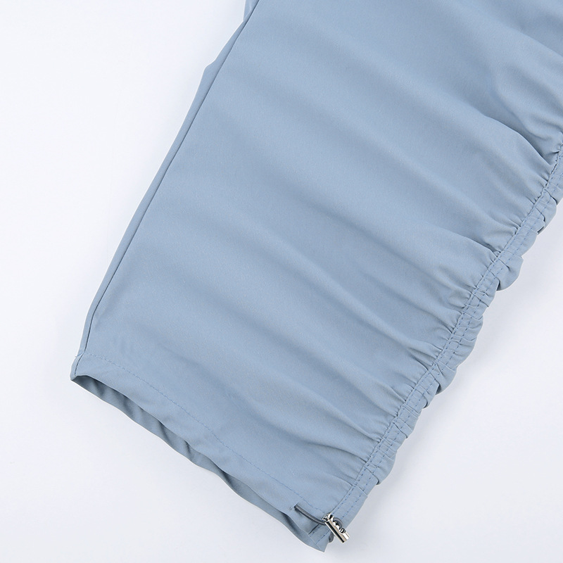 Grey Blue Pleated Drawstring Casual Pants For Women