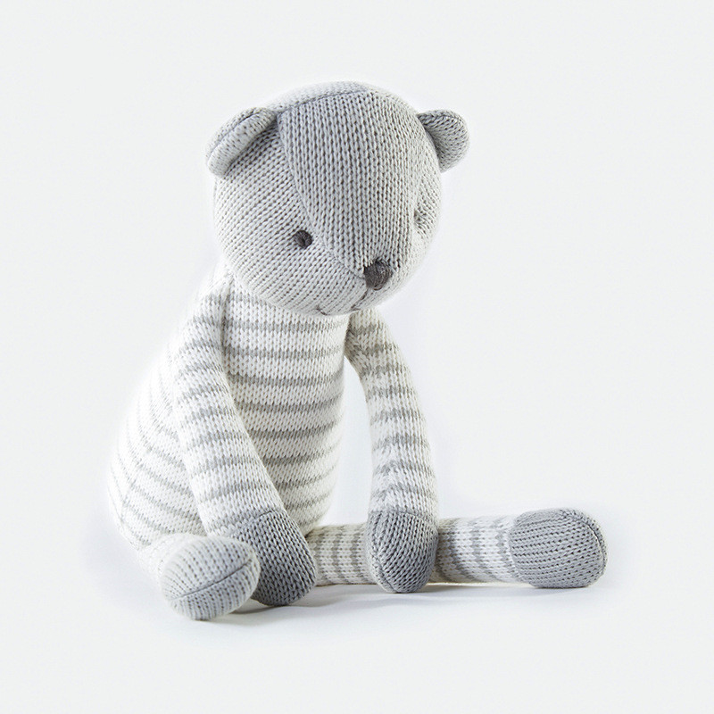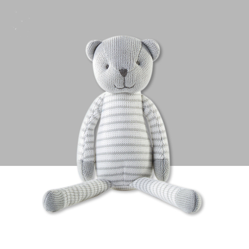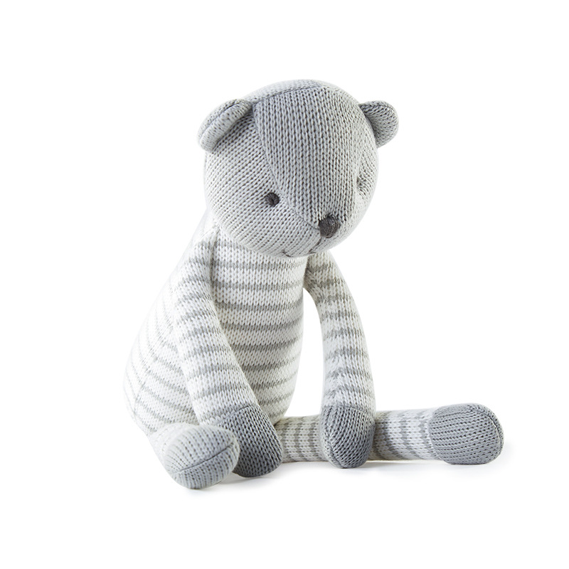 Grey Stripe Bear Doll Woolen Cloth Plush Toy Baby Pacify Doll