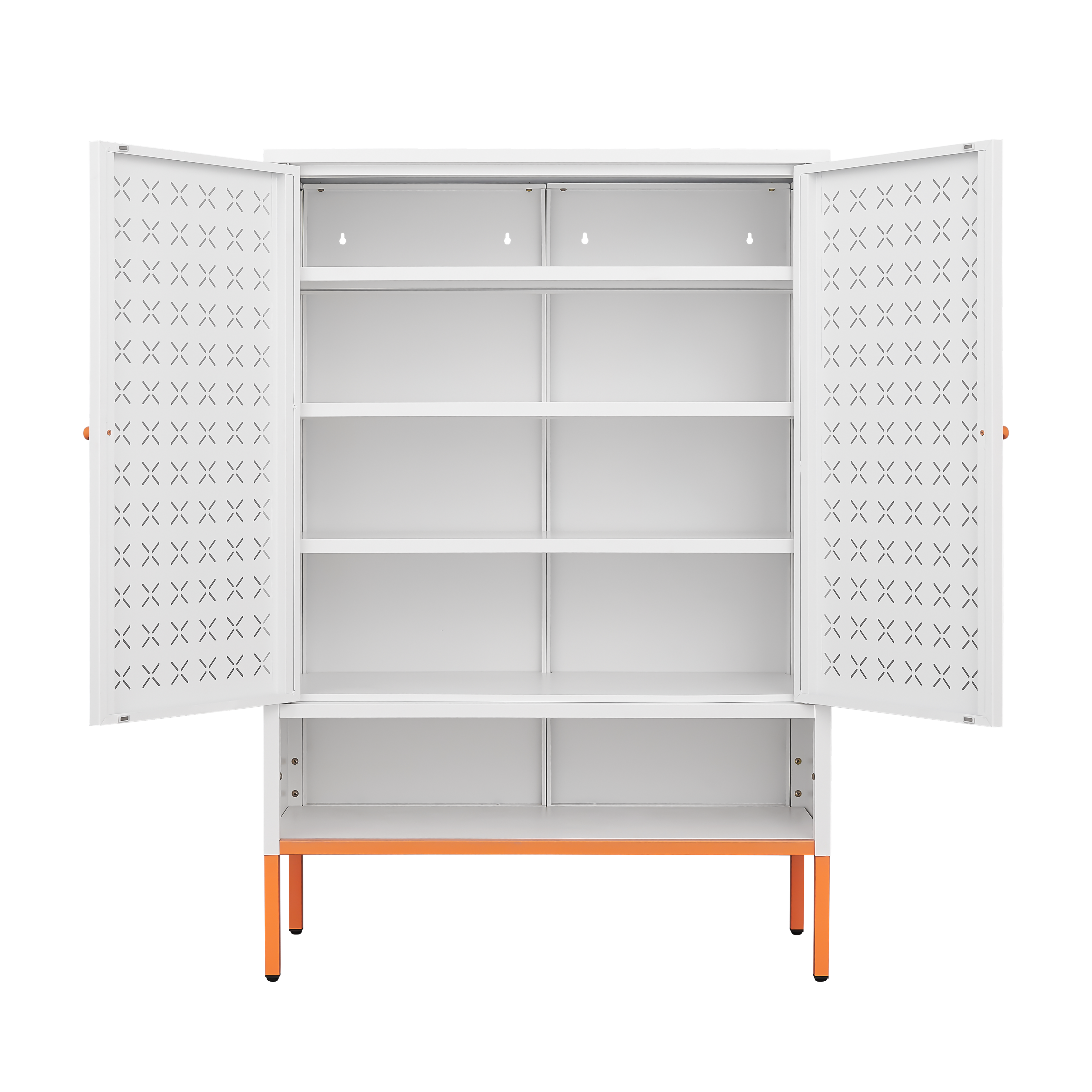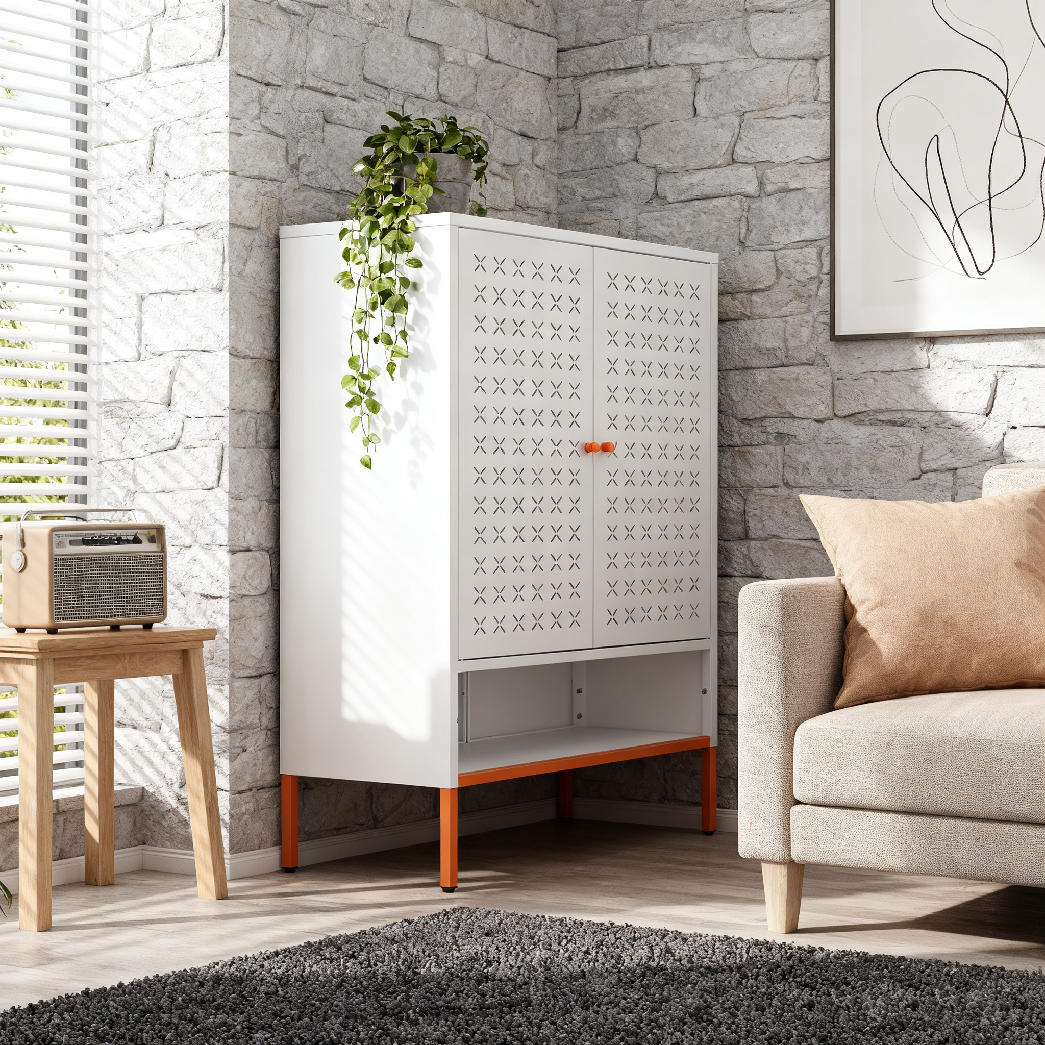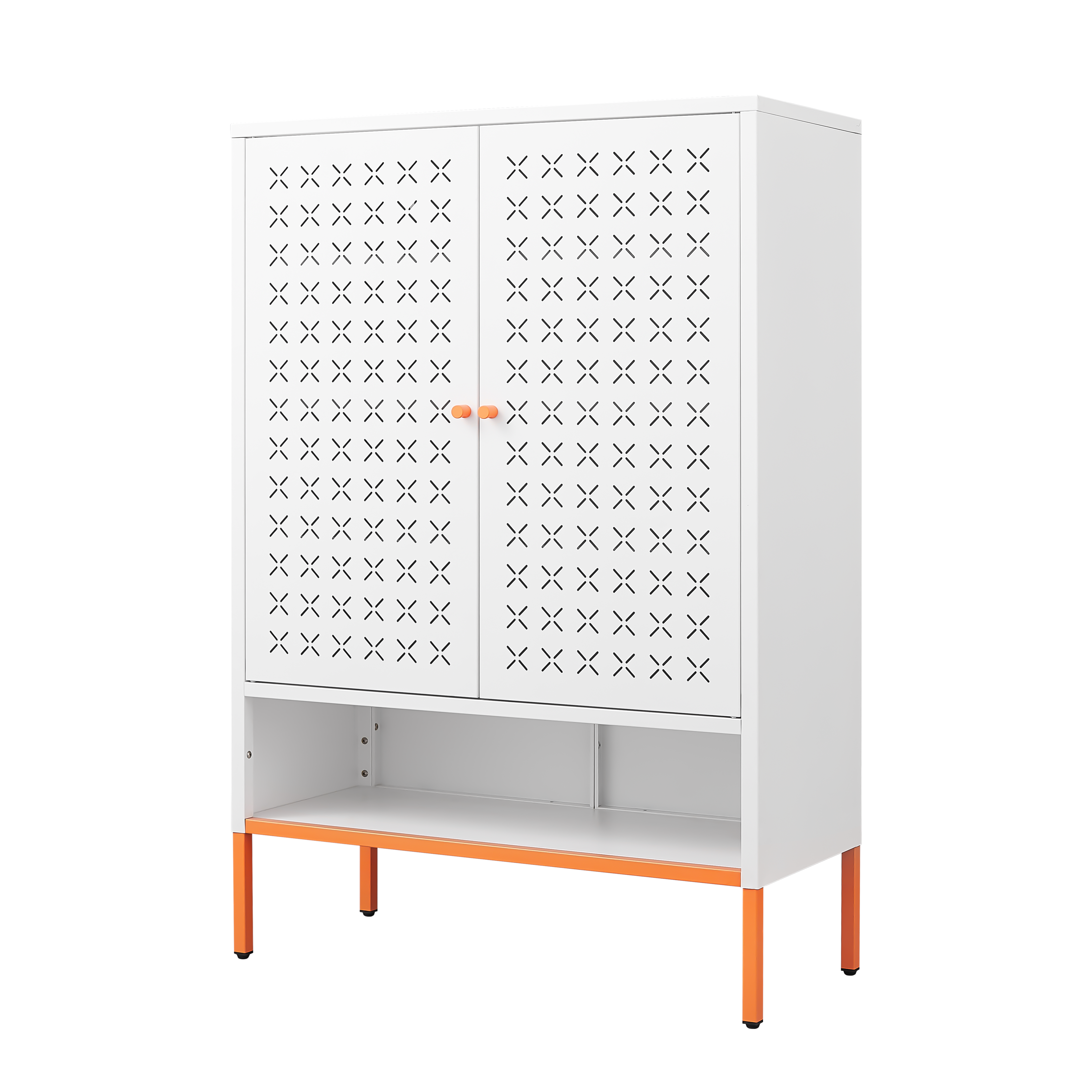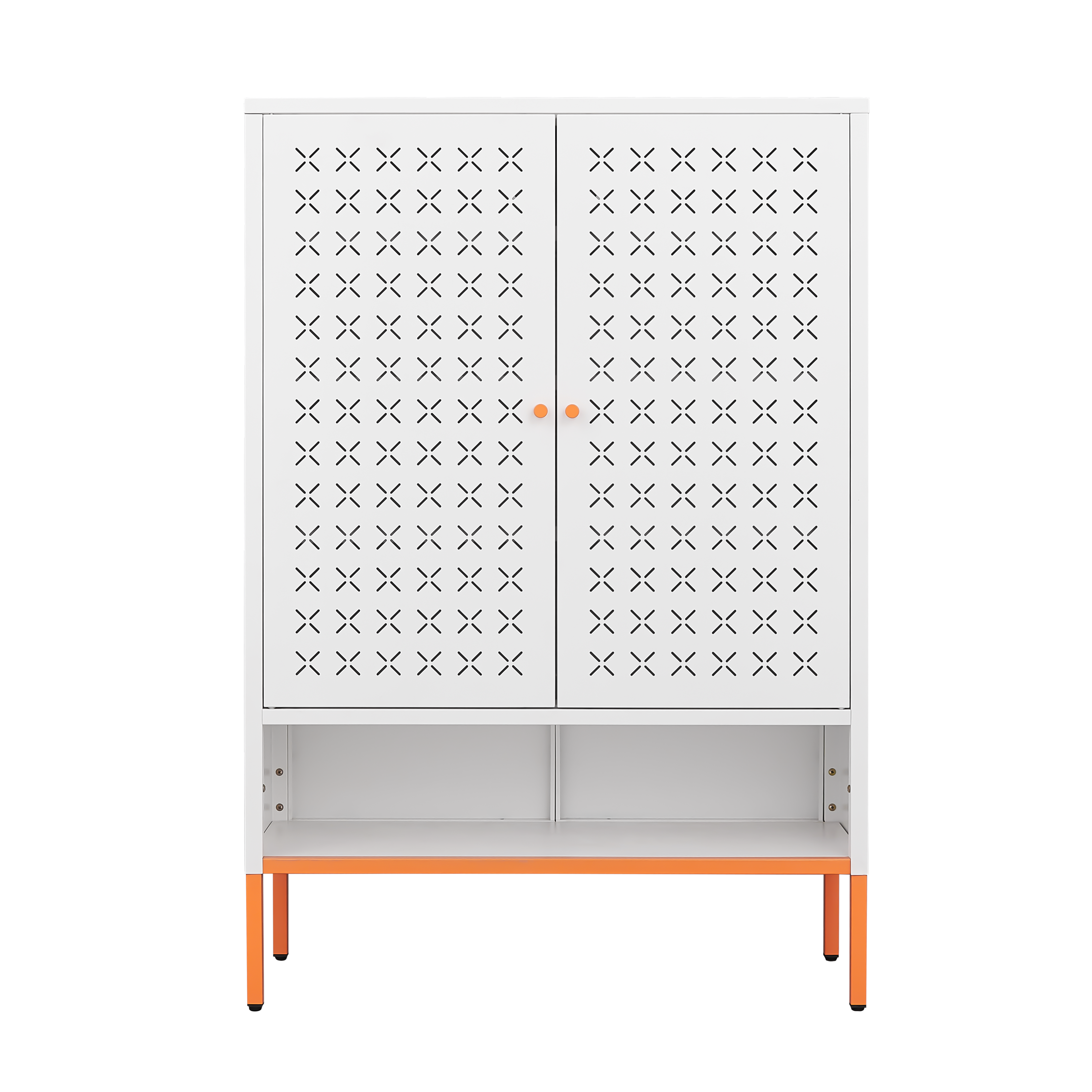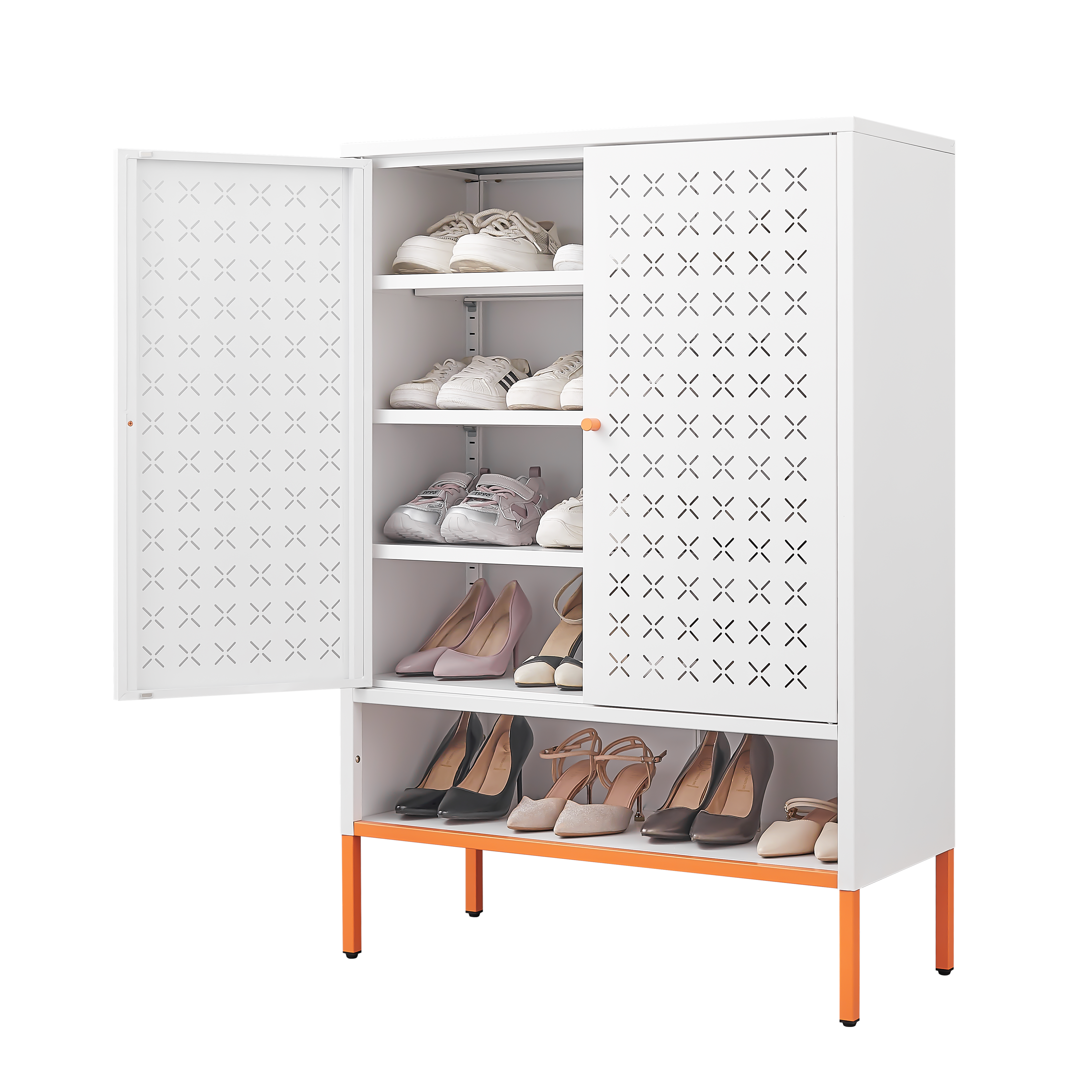 Grid Double Door Shoe Cabinet, Three Adjustable Compartments For Flexible Storage, Suspended Hollow Shoe Changing Compartment, Bottom 15cm Moisture-proof High Foot Design