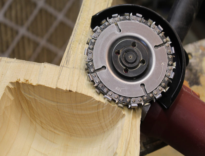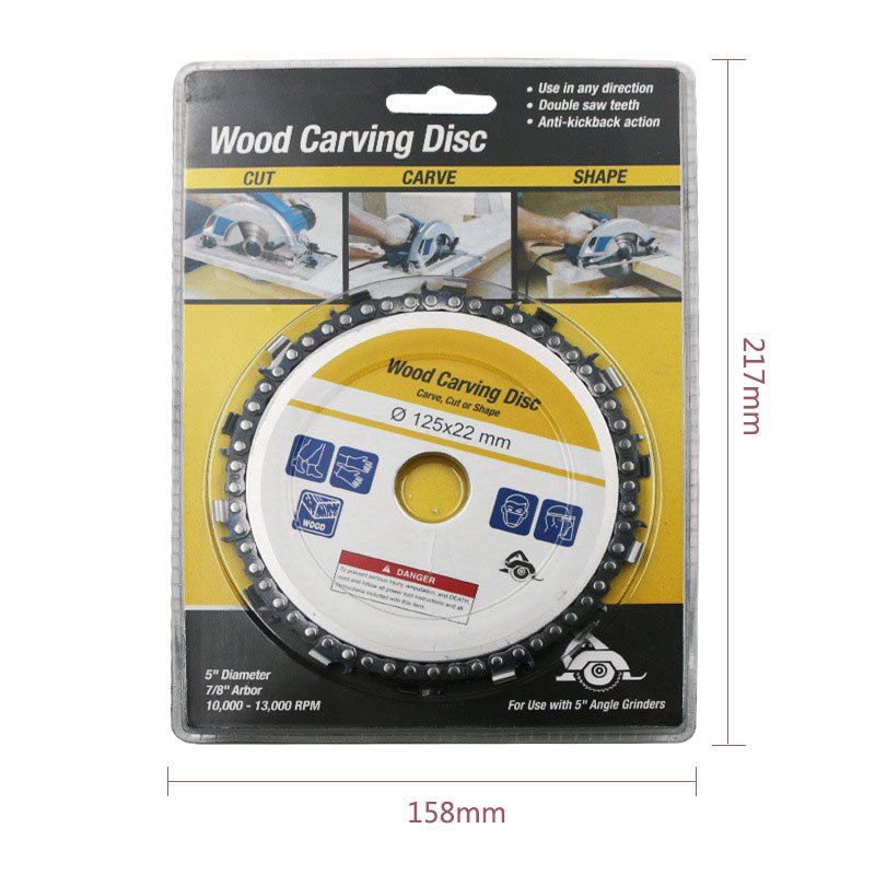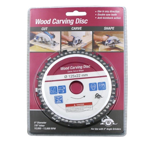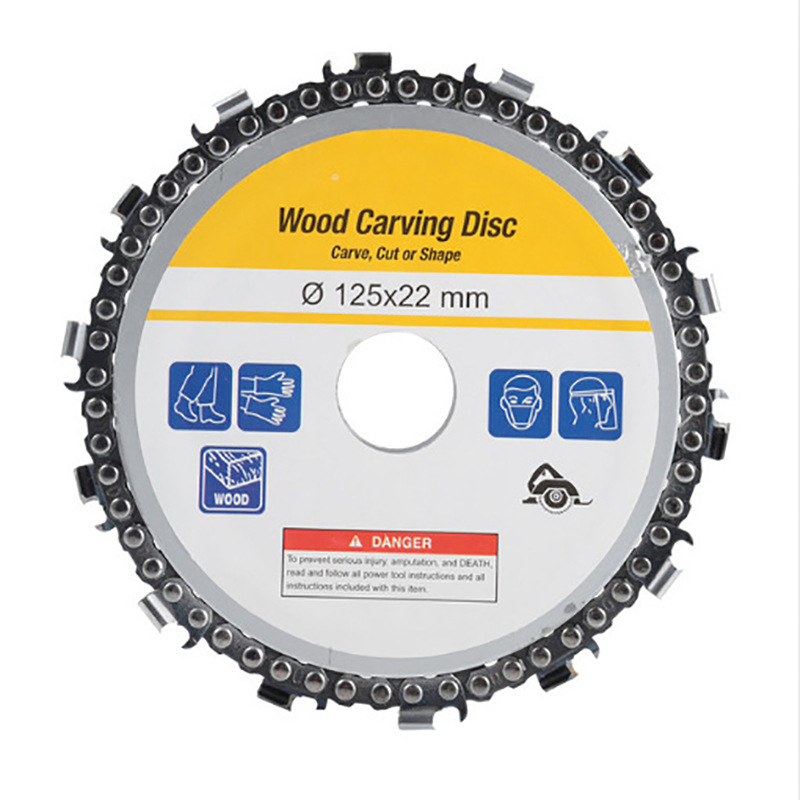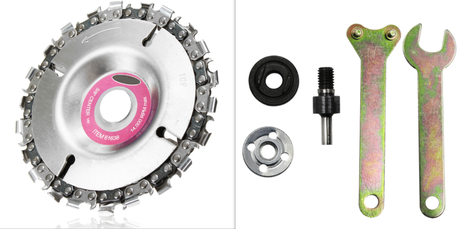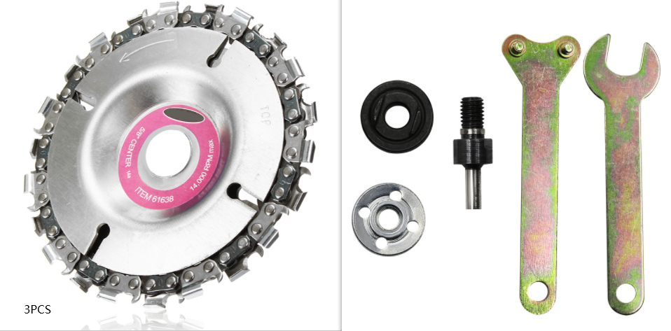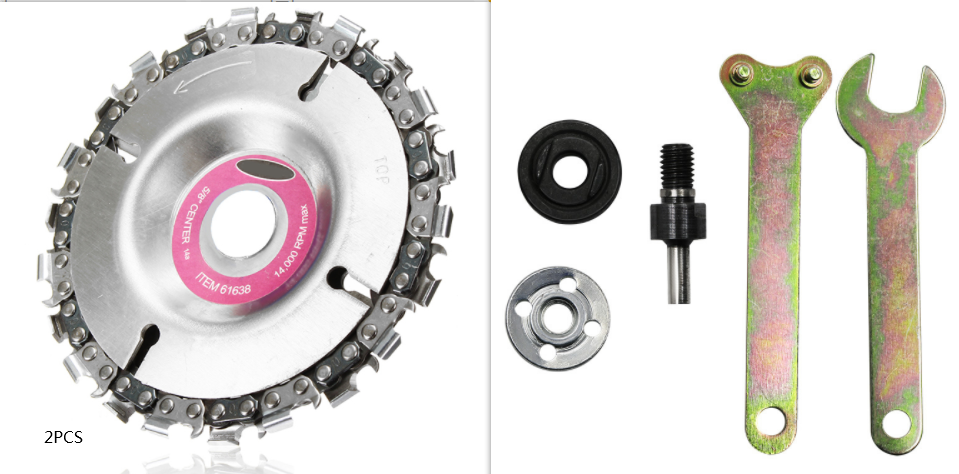 Grinder Disc Chain Saw takes the muscle work out of cutting, carving, removing and sculpting of wood, plastics, ice and hard rubber with their speed and maneuverability. The chain saw blade is held in place between two steel plates which provides a secure grip for carving. Regardless of grain or knots the blade cuts through the material with ease to the user.