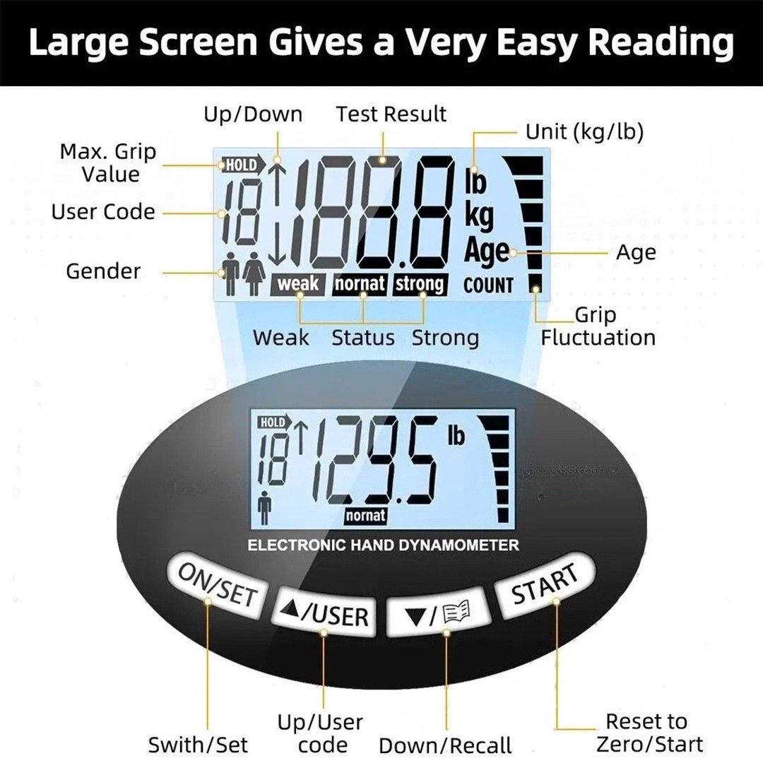 -Grip Strength Tester 180Kg Digital Hand Dynamometer Grip Strength Tool.