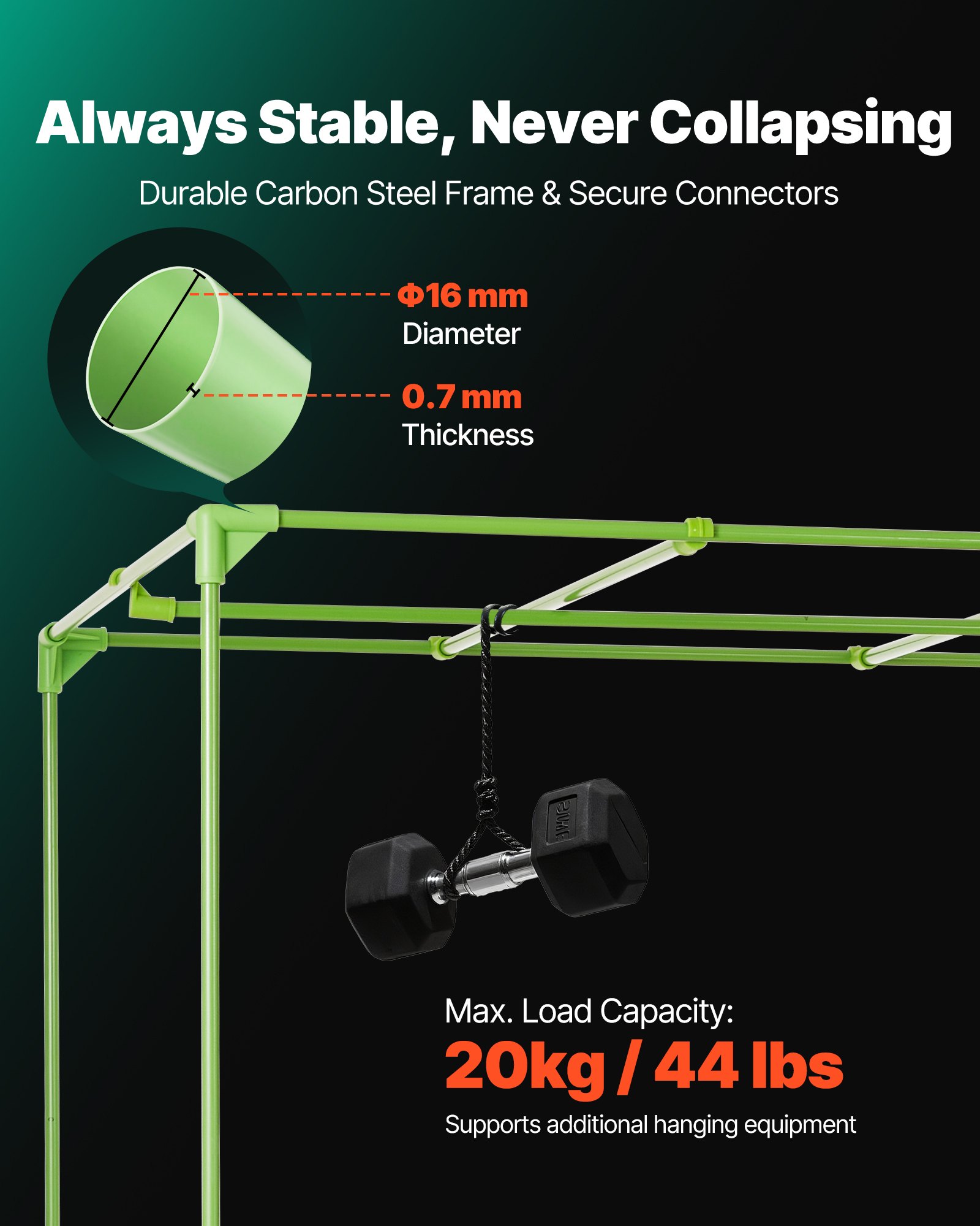 Kabelanschlussgröße: 102 mm/ 4 Zoll, Artikelmaterial: 600D Oxford-Stoff, reflektierende Polyesterfolie, Kohlenstoffstahl, PP, Belüftungsöffnungen: 5 Öffnungen, jeweils 203 mm / 8 Zoll, Nettogewicht: 9,8 kg / 21,6 lbs, Zeltabmessungen: 1200 x 1200 x 2000 mm / 47,2 x 47,2 x 78,7 Zoll, Farbe: Schwarz + Grün,Artikelmodellnummer: HX120120200, Gewichtskapazität: 20 kg / 44 lbs