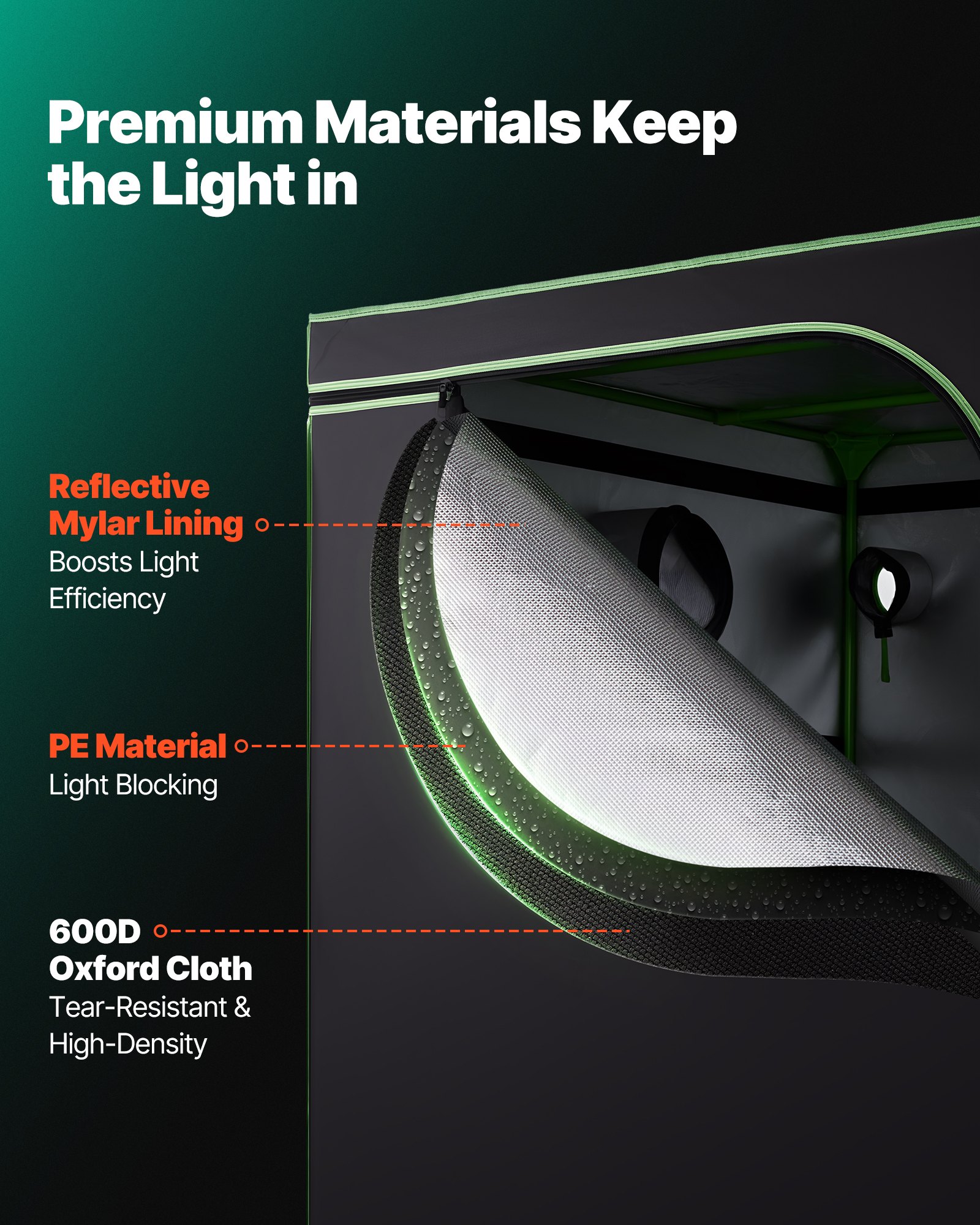 VEVOR Growzelt, 120x120x200 cm, Growbox 600D hochreflektierendes Mylar, Indoor-Pflanzenzelt mit Beobachtungsfenster, Bodenwanne & Reißverschluss, robuste Zuchtzelte für Obst, Blumen & Gemüse