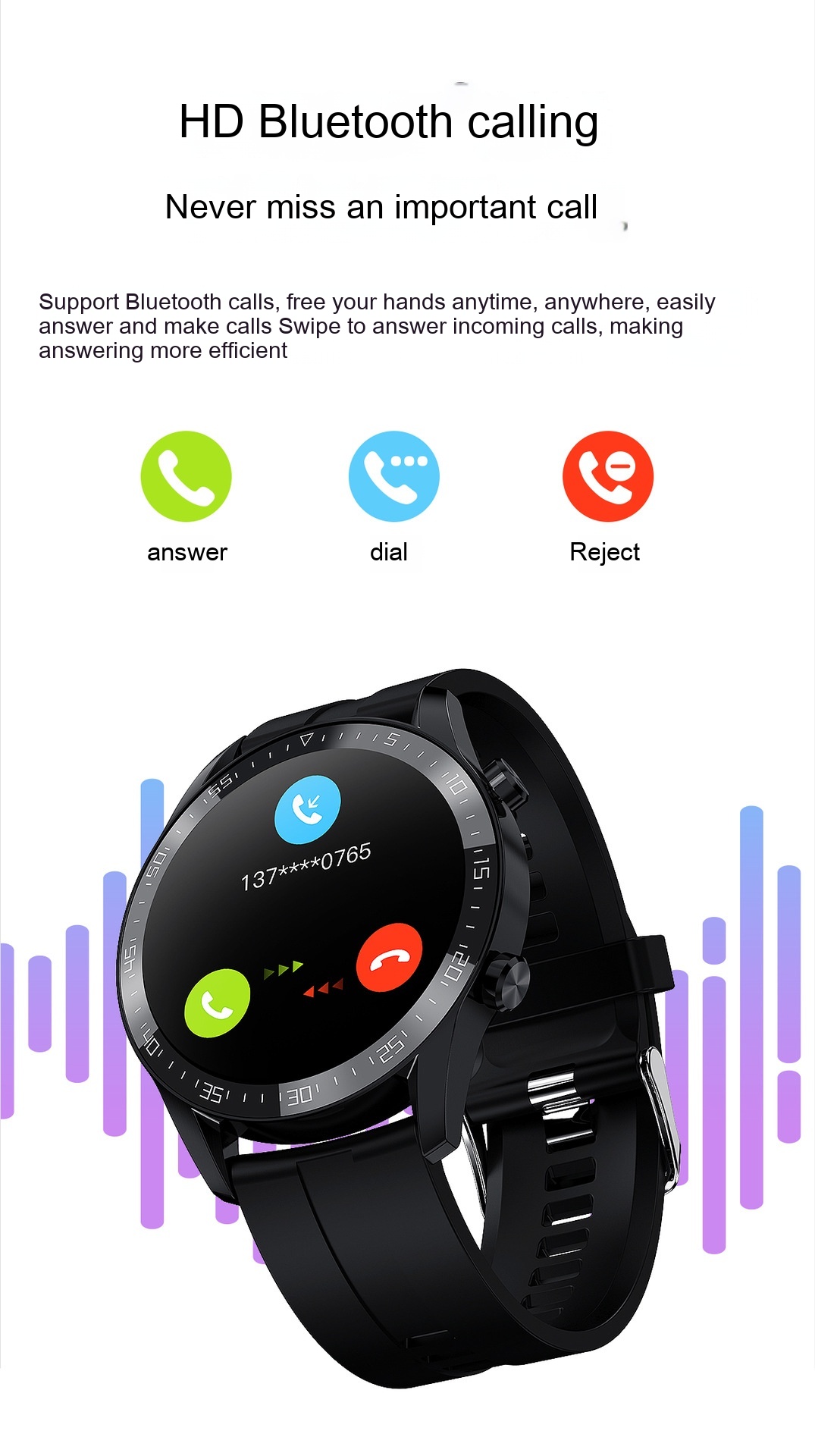 Functions: Waterproof, photo taking, step counting, heart rate monitoring, Bluetooth calling, smart reminder, remote control selfie, information push