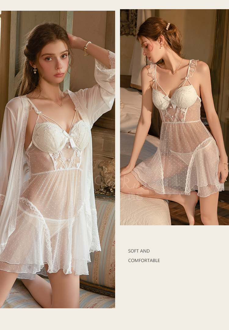 Color: 6369 White (Nightgown), 1256 White (Robe + Belt)