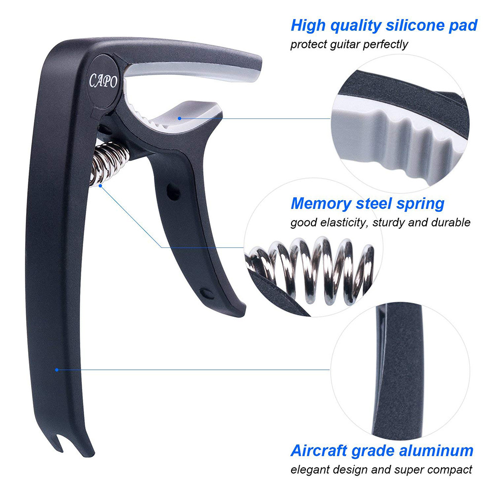 Delivery list: 1x three-in-one cable reel 1x capo (black) 1x tuner (black) 1x leather pick bag (black) 2x metal picks (copper, gold) 3x acoustic guitar strings (yellow) Copper, copper, colored strings) 2x plastic upper Pillow (black x1, white x1) 2x plastic lower pillow (black x1, white x1) 6x plastic black string nails 6x plastic white string nails 5x celluloid pick 071mm ( Random Color)