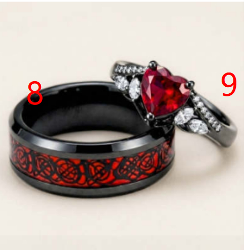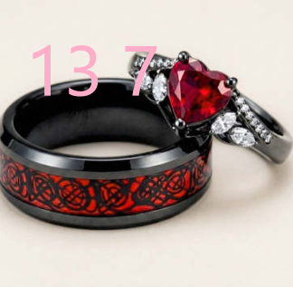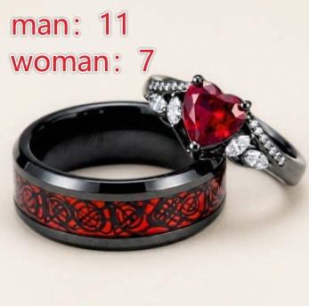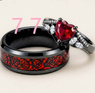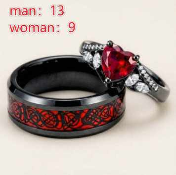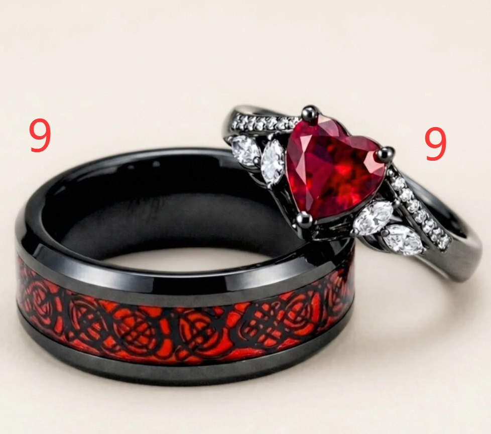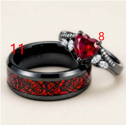 Gun-black Plated Crown Ring Inlaid With A Red Heart-shaped Diamond